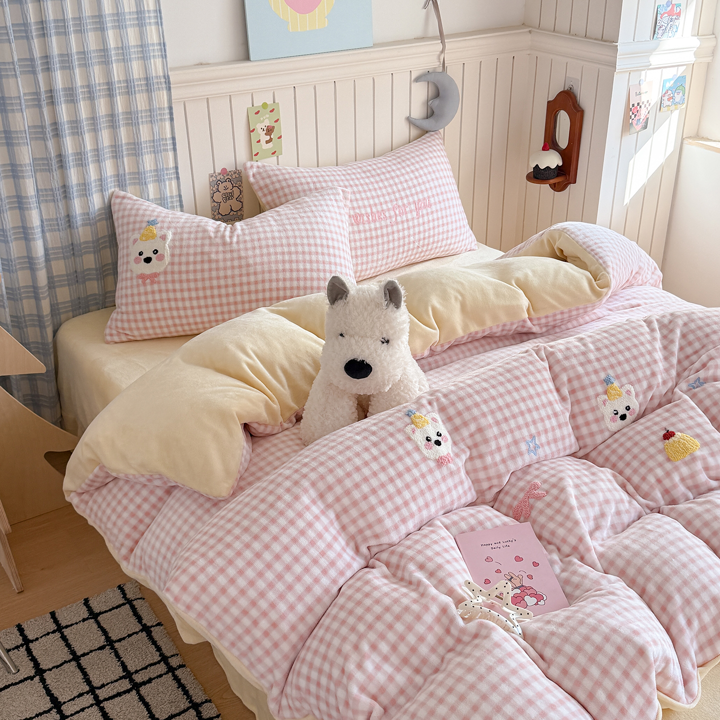 (总)潘朵拉 2025新款ins风牛奶绒床盖四件套,饼干熊,点点狗,粉萌宝,花漾,墨莲,奶酪狗,山茶予你,条纹狗,小狗杰西,紫薇