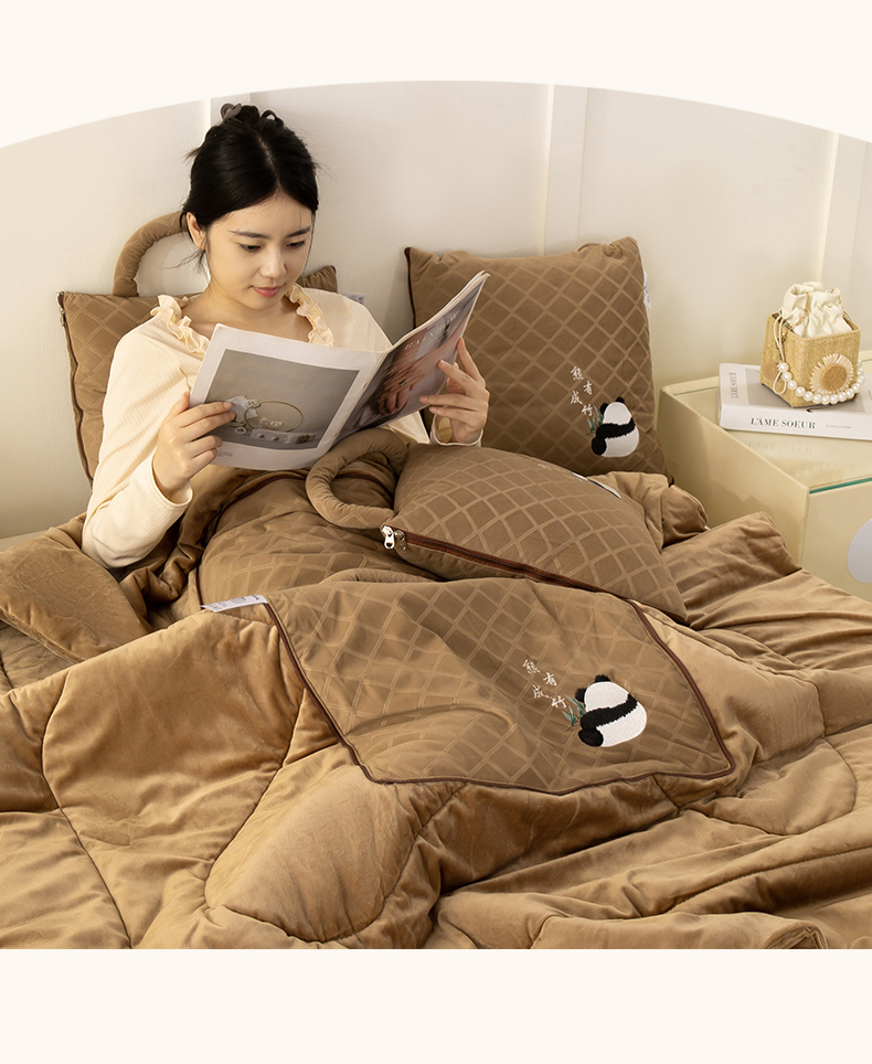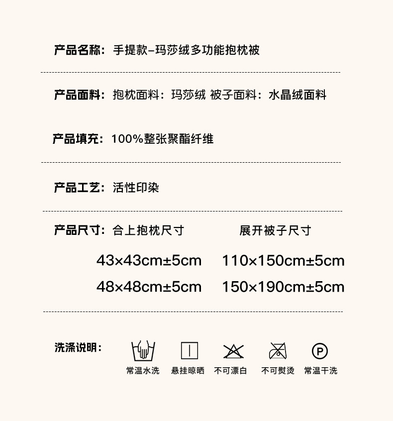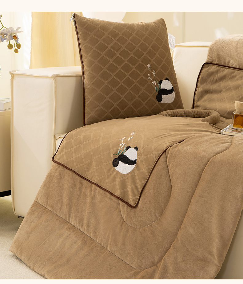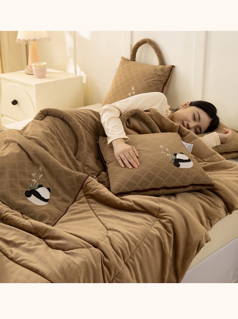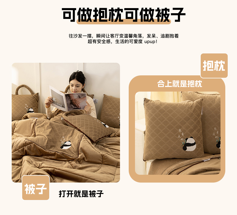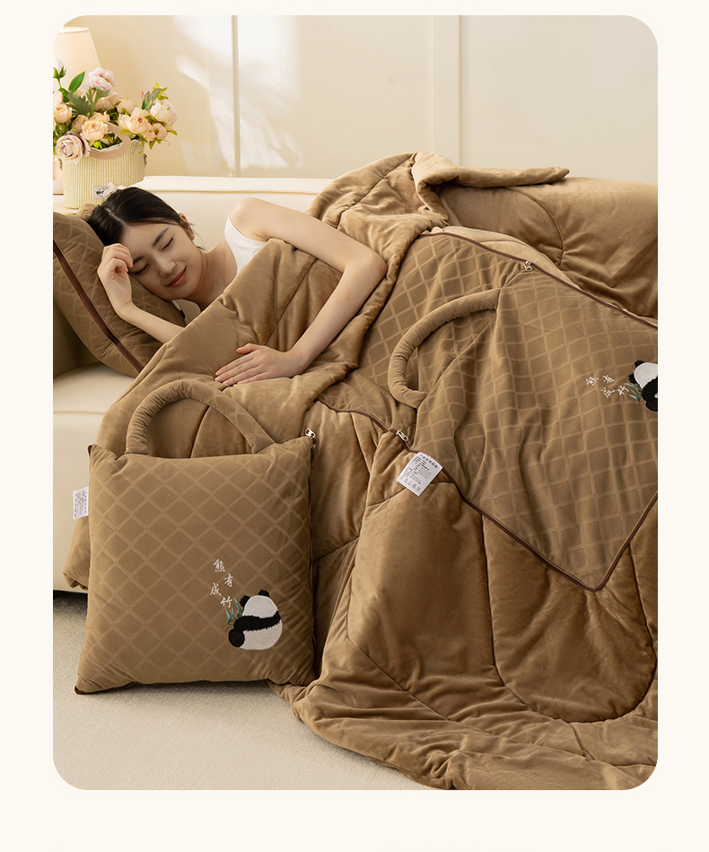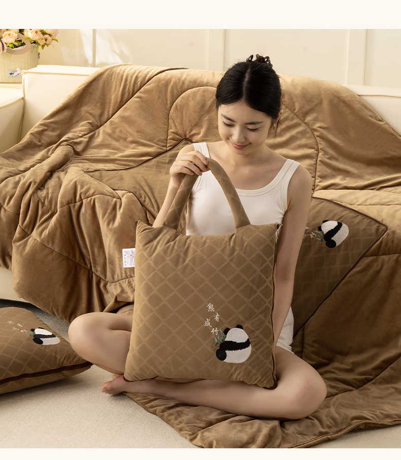 商品名称:(总)多今家纺 2025新款便携手提式水晶绒玛莎绒刺绣抱枕被子-熊有成竹系列