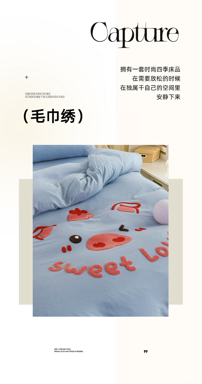 当前位置: 91家纺网 > 商品网购 > 床品套件 > 四件套 > 毛巾绣四件套 > 恋之语 2025新款皱皱纱木棉毛巾绣四件套及单被套系列-可爱猪 可爱猪-米白