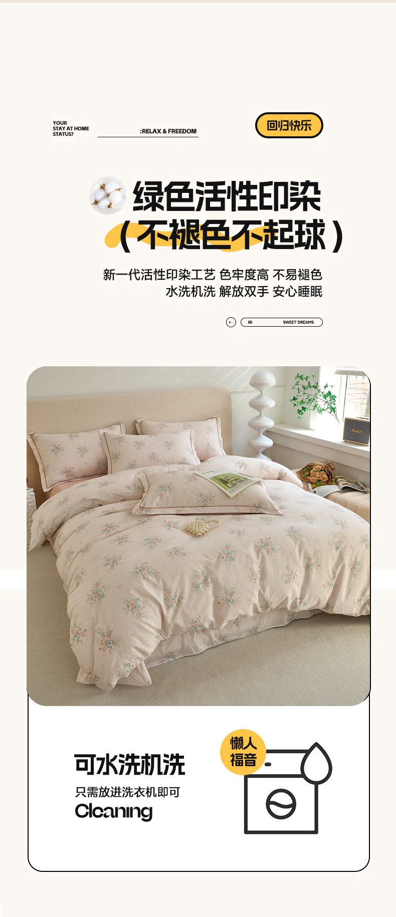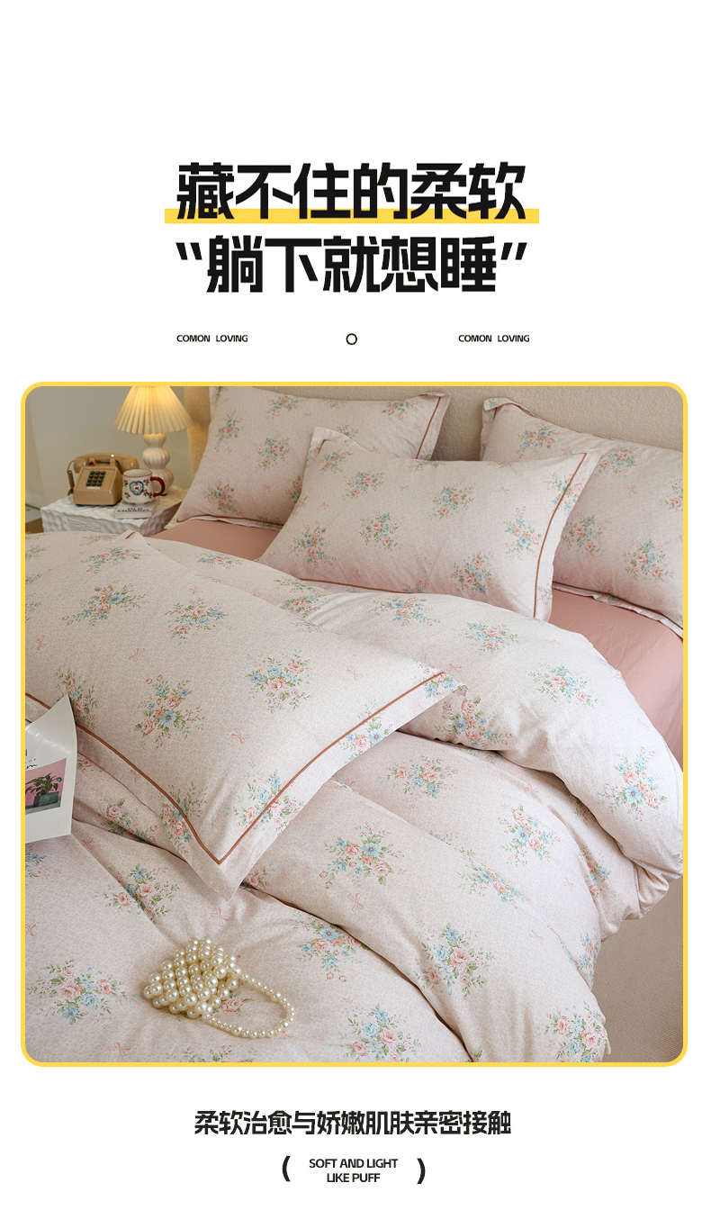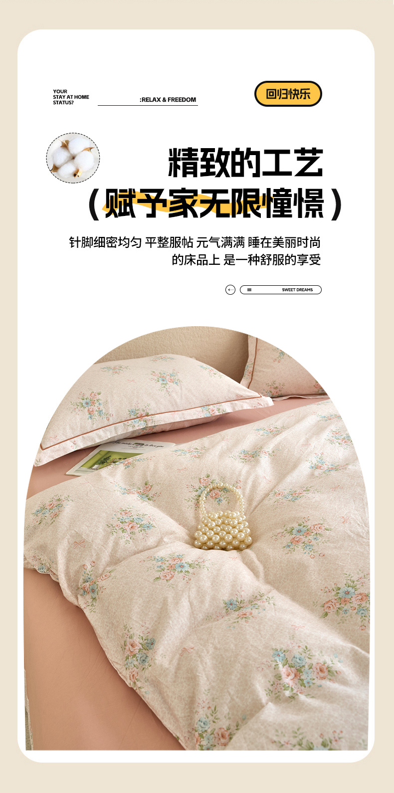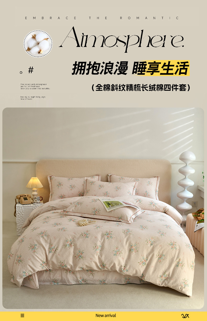 当前位置: 91家纺网 > 商品网购 > 床品套件 > 四件套 > 全棉普通四件套 > 三沁家居 2025新款全棉纯棉斜纹精梳长绒棉印花四件套 沐露梳风