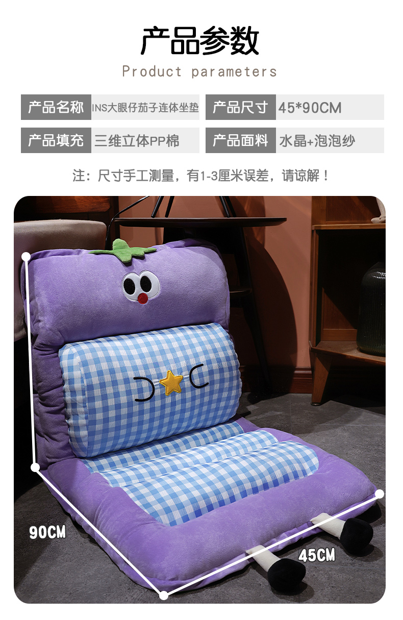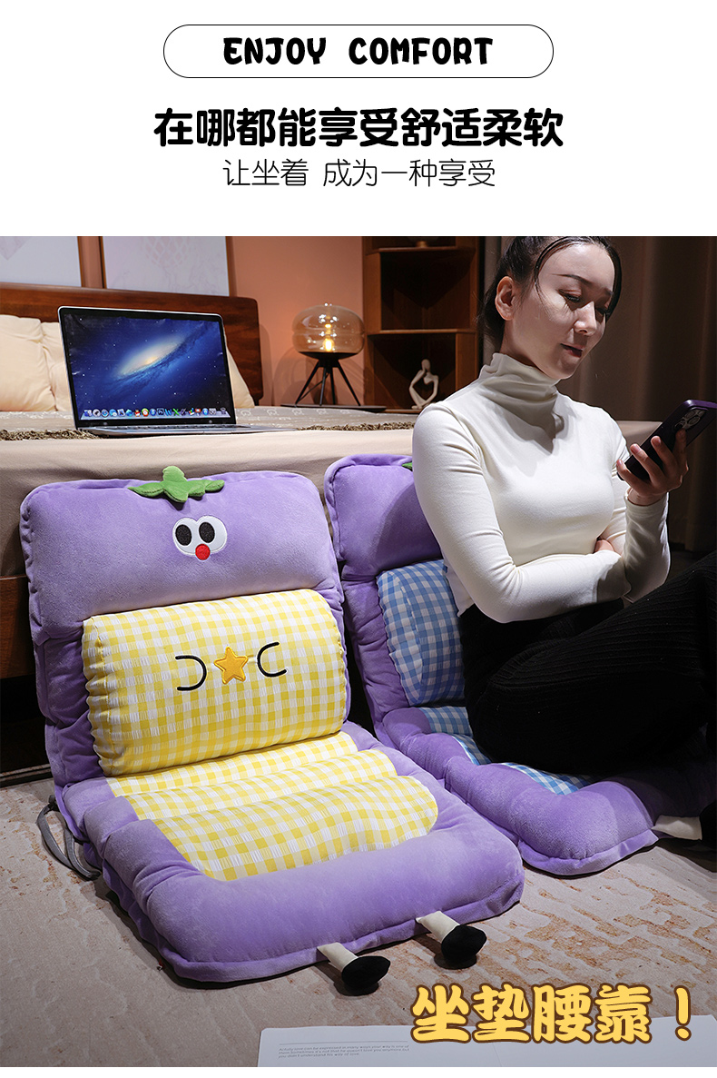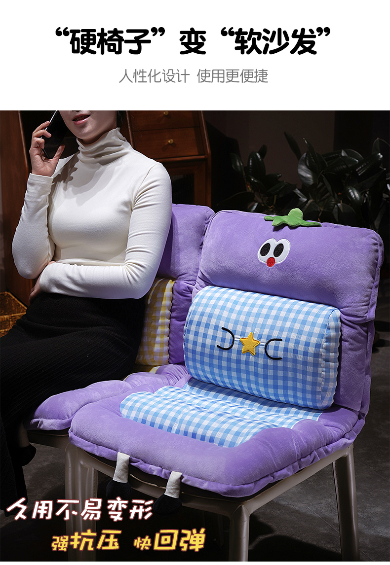 当前位置: 91家纺网 > 商品网购 > 居家布艺 > 坐垫/椅垫/沙发垫 > 椅垫 > 仟亿莱 2025新款大眼茄子护腰连体坐垫 连体黄格茄子