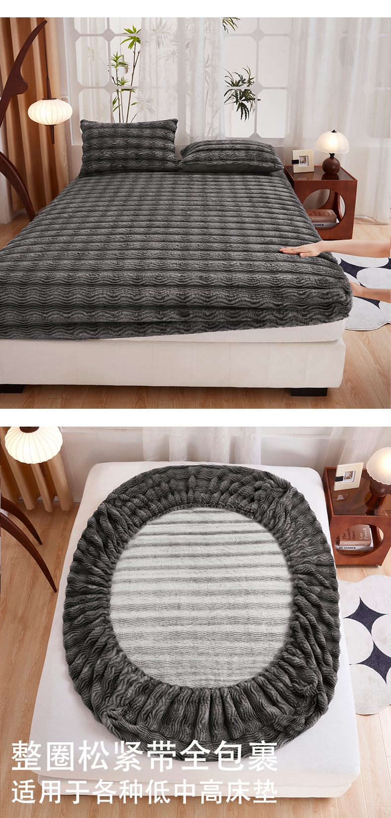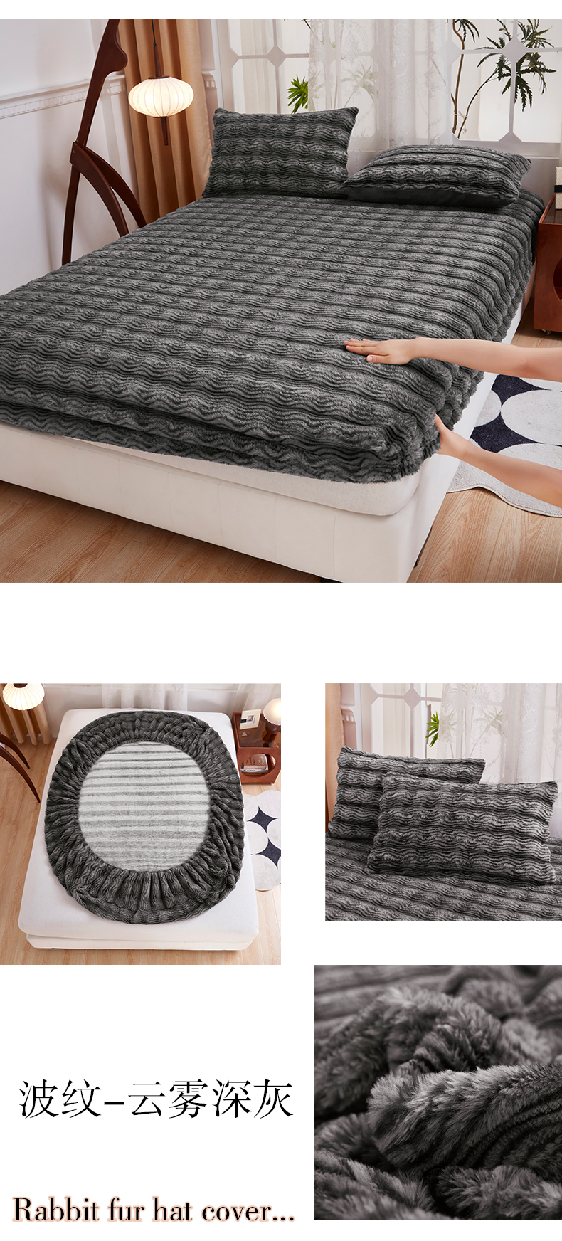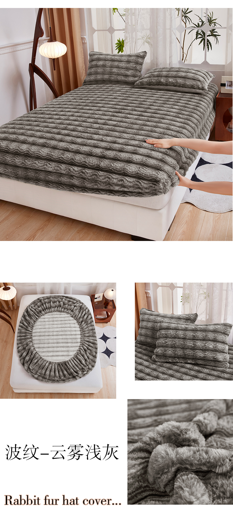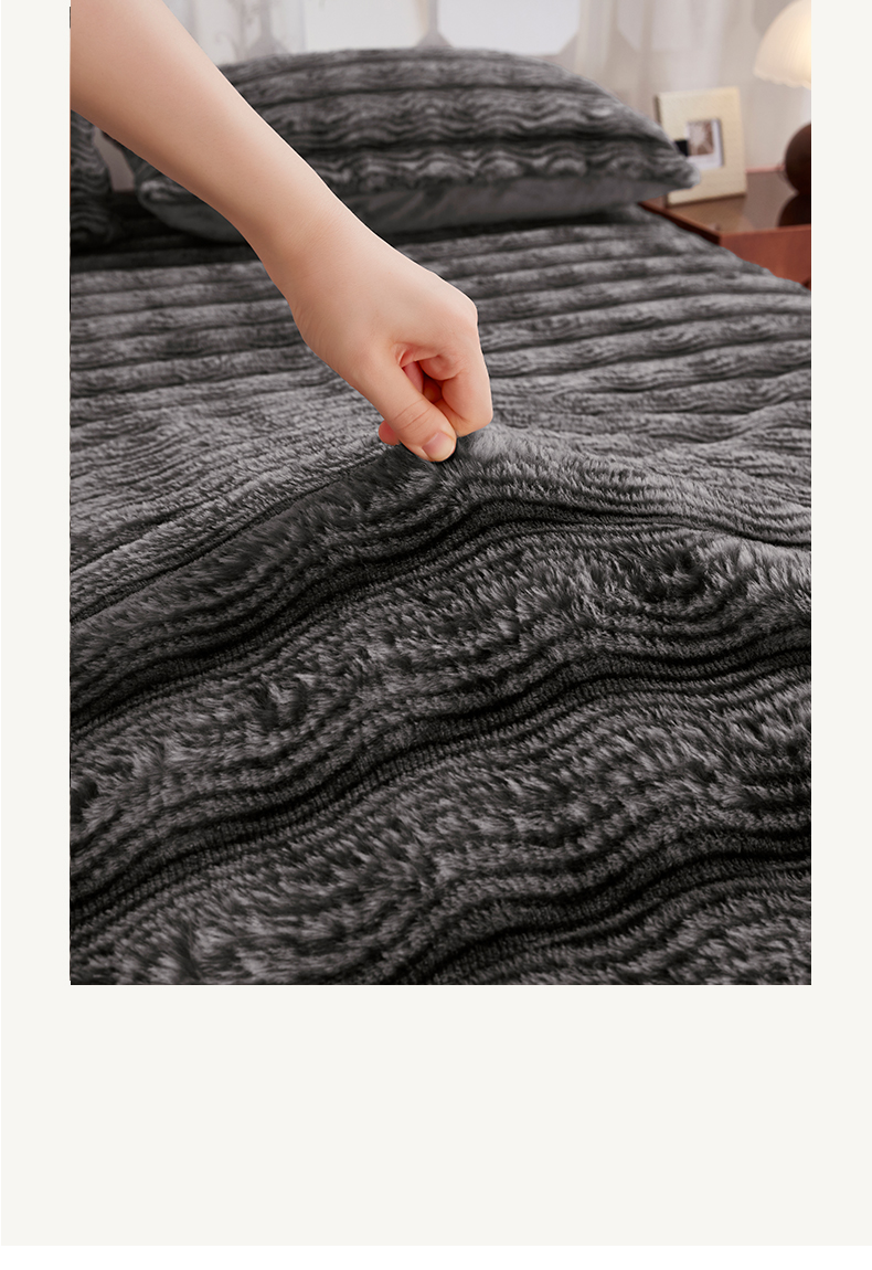 商品名称:乐居家纺 2025新款加厚兔毛绒纯色床笠系列 波纹-云雾深灰