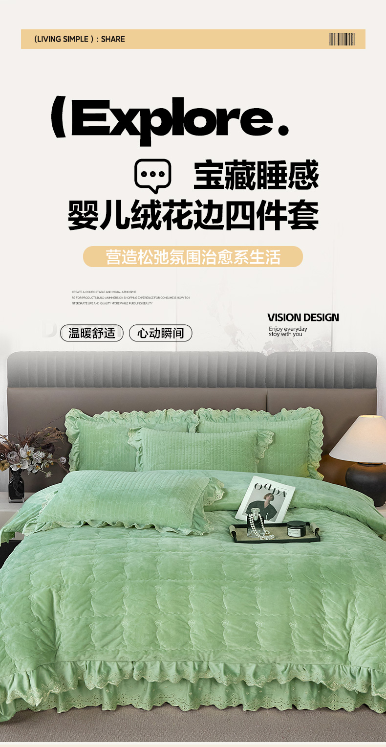 (总)默忆 2025新款婴儿绒宝宝绒玫瑰版床盖款四件套-慕达