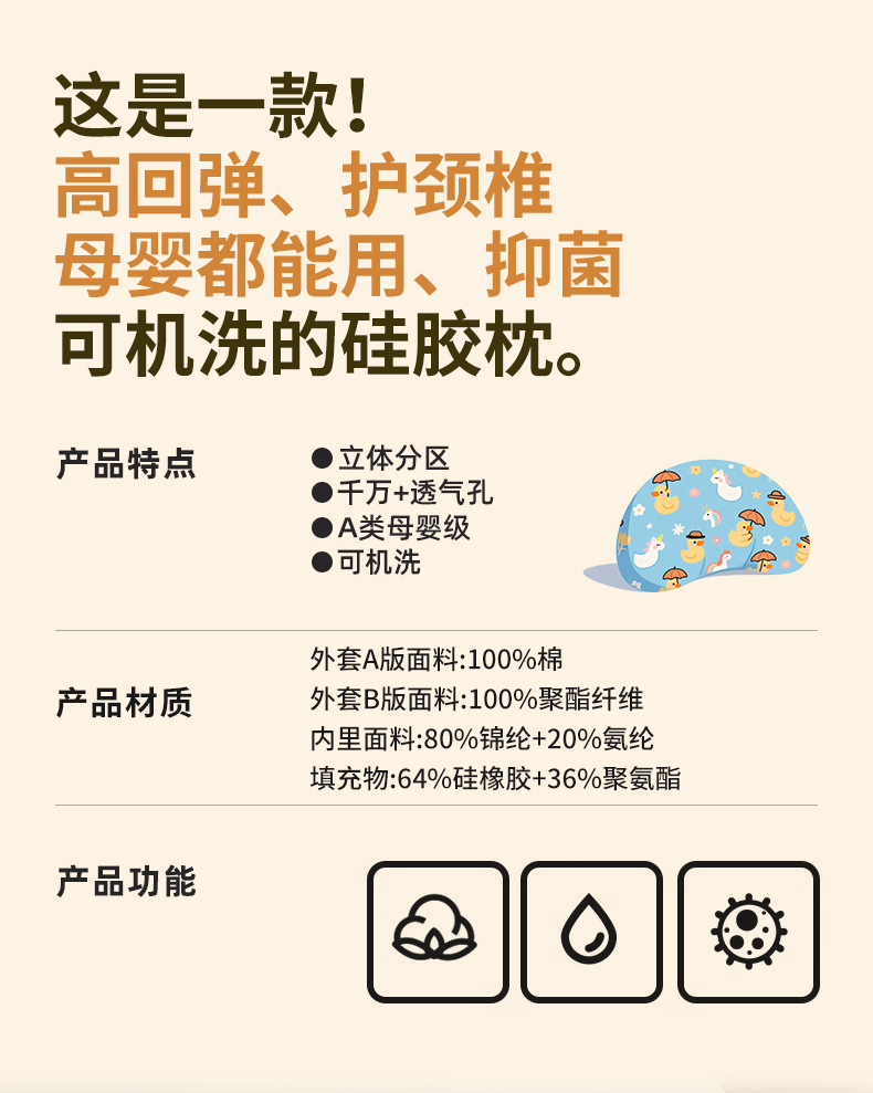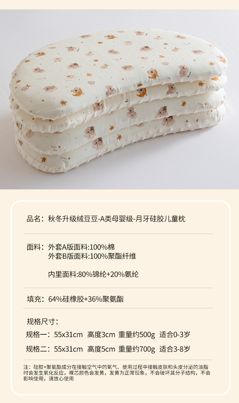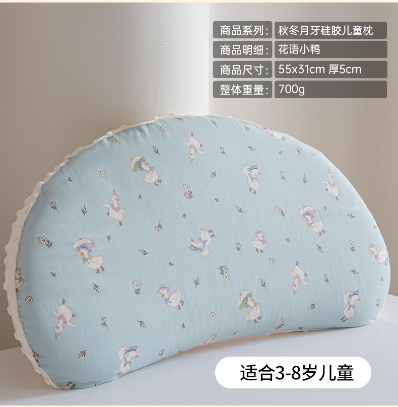 当前位置: 91家纺网 > 商品网购 > 枕头/枕芯/保健枕/颈椎枕 > 枕头枕芯 > 昕科 2025秋冬绒豆豆-A类母婴级全棉月牙硅胶儿童枕-学生枕芯硅胶儿童枕头 月牙硅胶-花语小鸭-3cm
