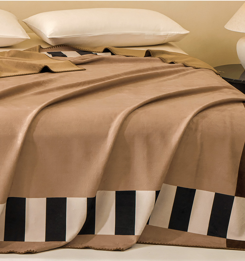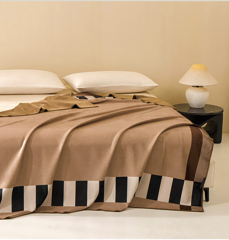 (总)禧禾 2025新款300g氨超锦狐绒数码印花毛毯-米吉拉 咖