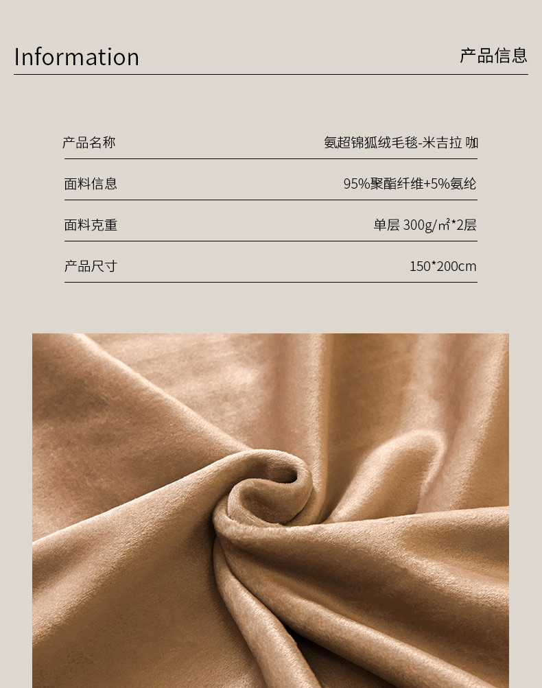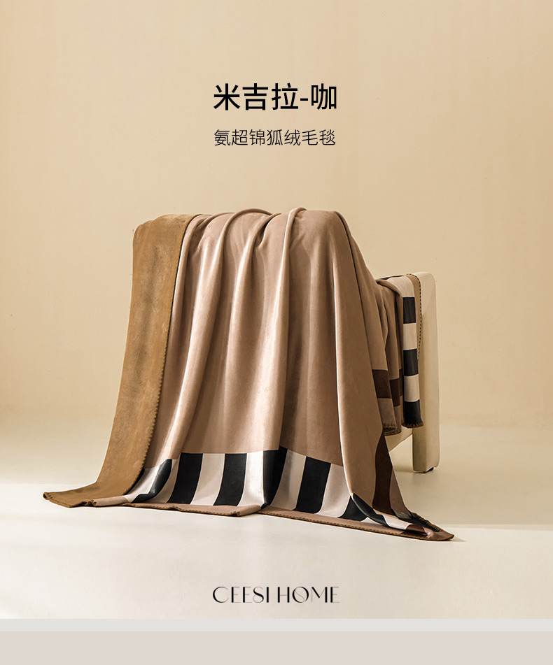 商品名称:(总)禧禾 2025新款300g氨超锦狐绒数码印花毛毯-米吉拉 咖