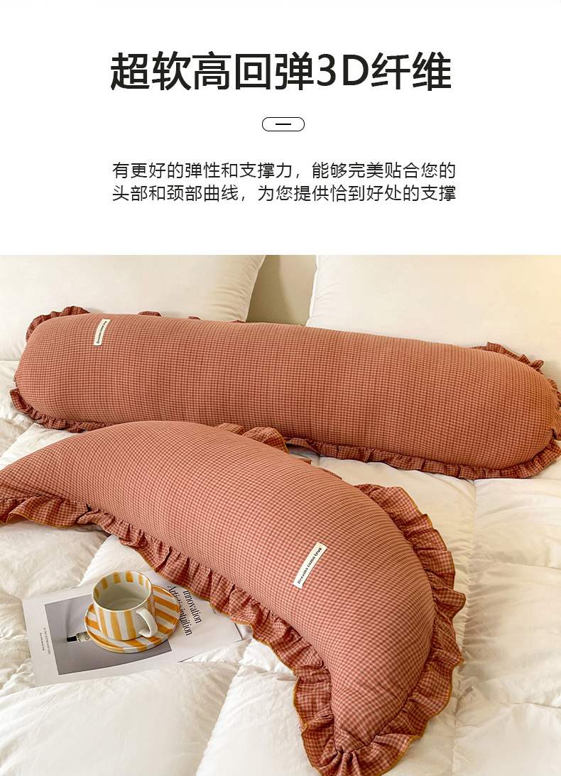 商品名称:亦帆枕芯 2025新款全棉纱布长条抱枕月亮抱枕枕芯加枕套可拆洗套装 栗色-长条形