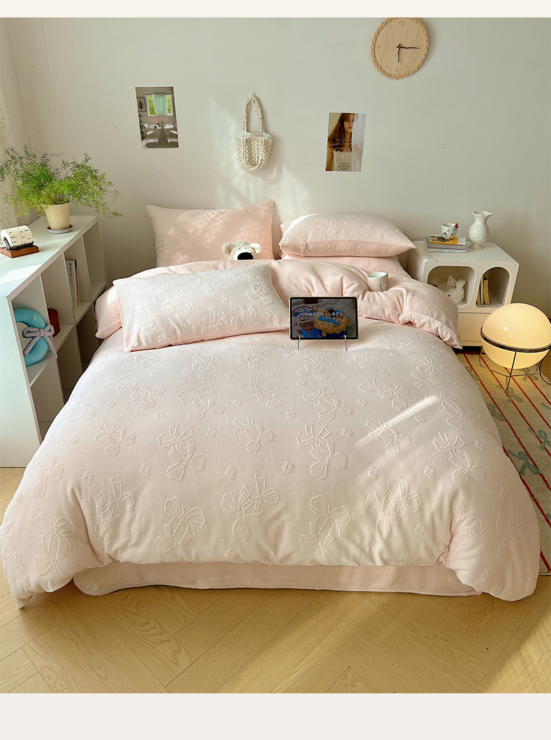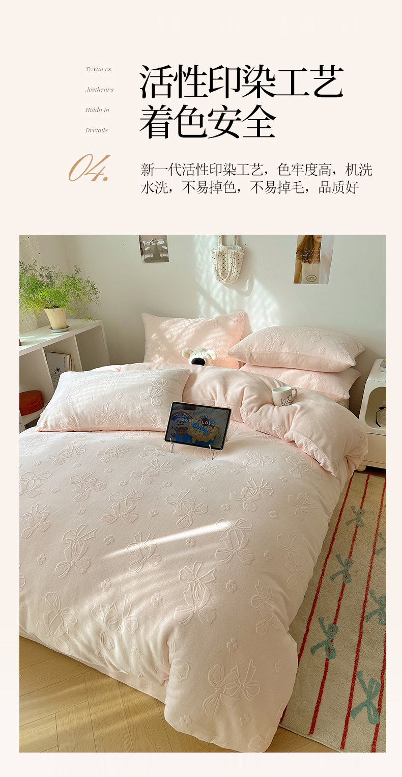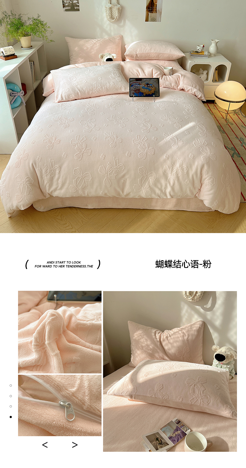 当前位置: 91家纺网 > 商品网购 > 床品套件 > 四件套 > 牛奶绒四件套 > 六巷胡同 2025新款INS博主风蝴蝶结心语立体雕花A类牛奶绒四件套 (会员减5元) 蝴蝶结心语-粉