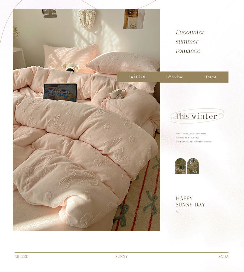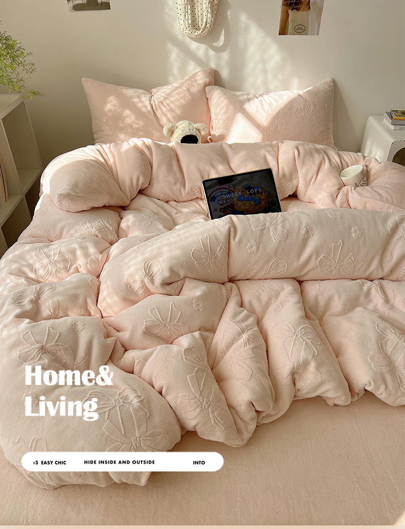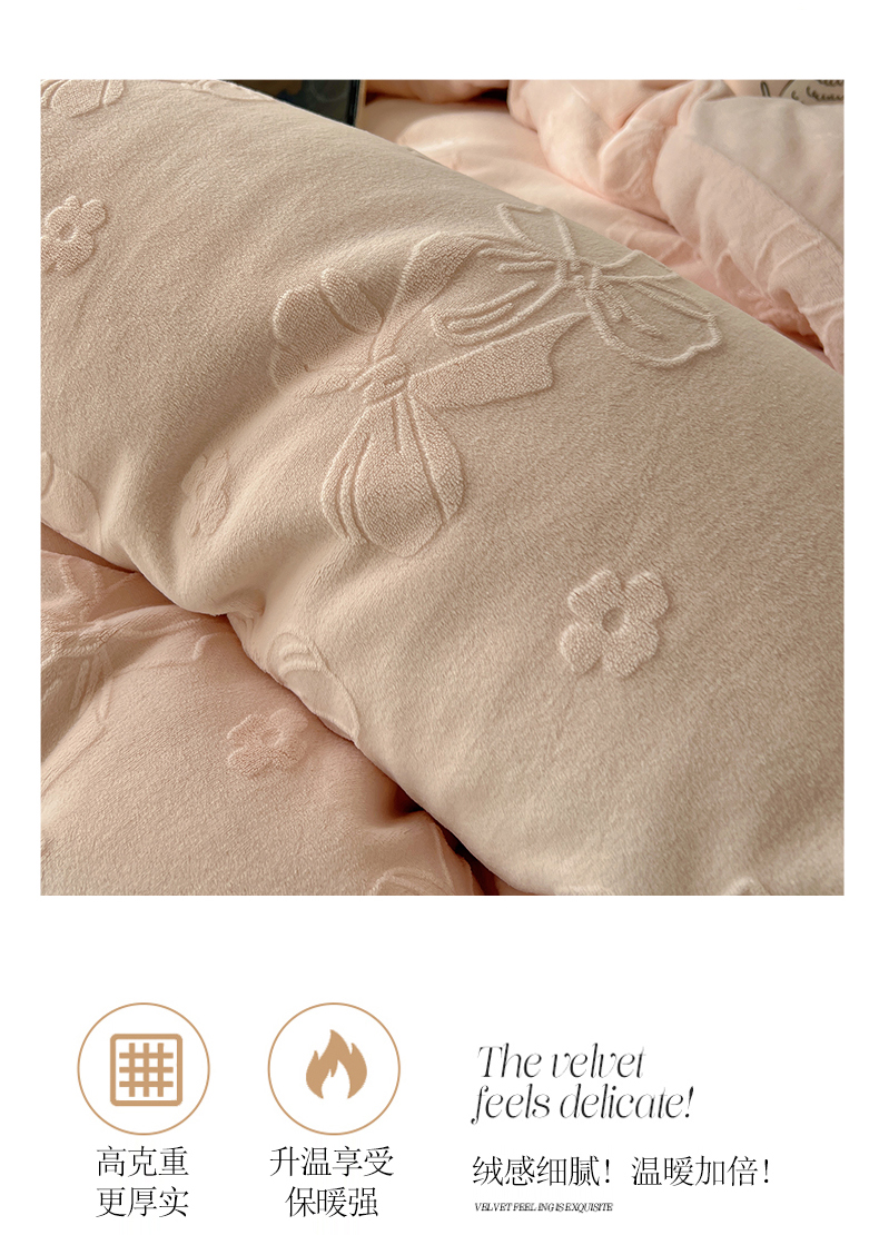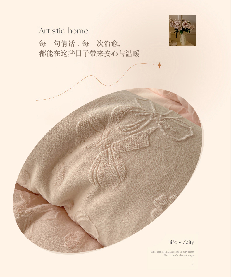 当前位置: 91家纺网 > 商品网购 > 床品套件 > 四件套 > 牛奶绒四件套 > 六巷胡同 2025新款INS博主风蝴蝶结心语立体雕花A类牛奶绒四件套 (会员减5元) 蝴蝶结心语-粉
