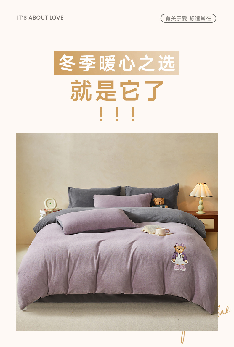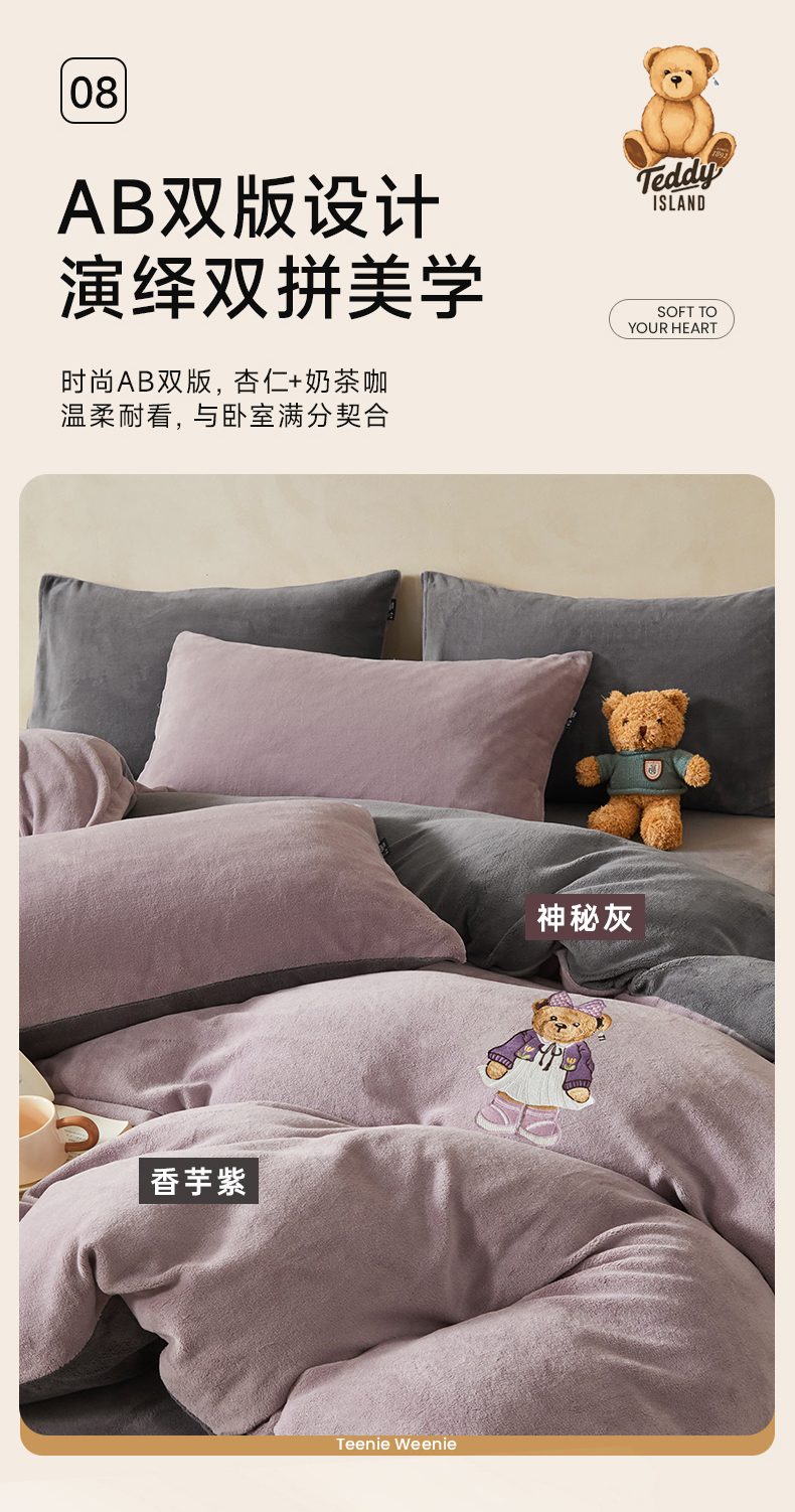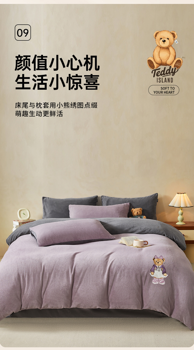 当前位置: 91家纺网 > 商品网购 > 床品套件 > 四件套 > 牛奶绒四件套 > 尚品本色 2025新款牛奶绒绣花四件套 香芋紫+神秘灰