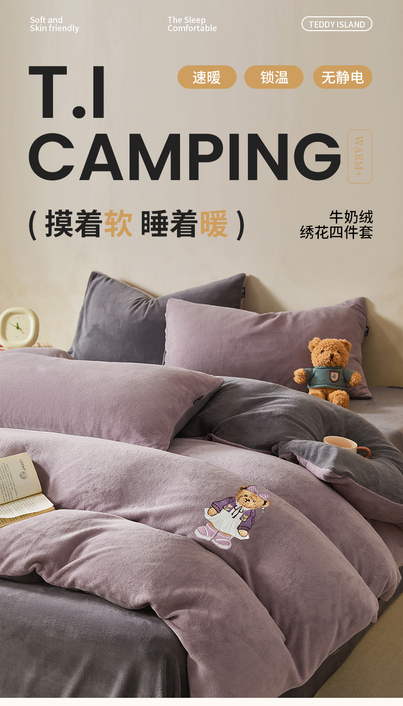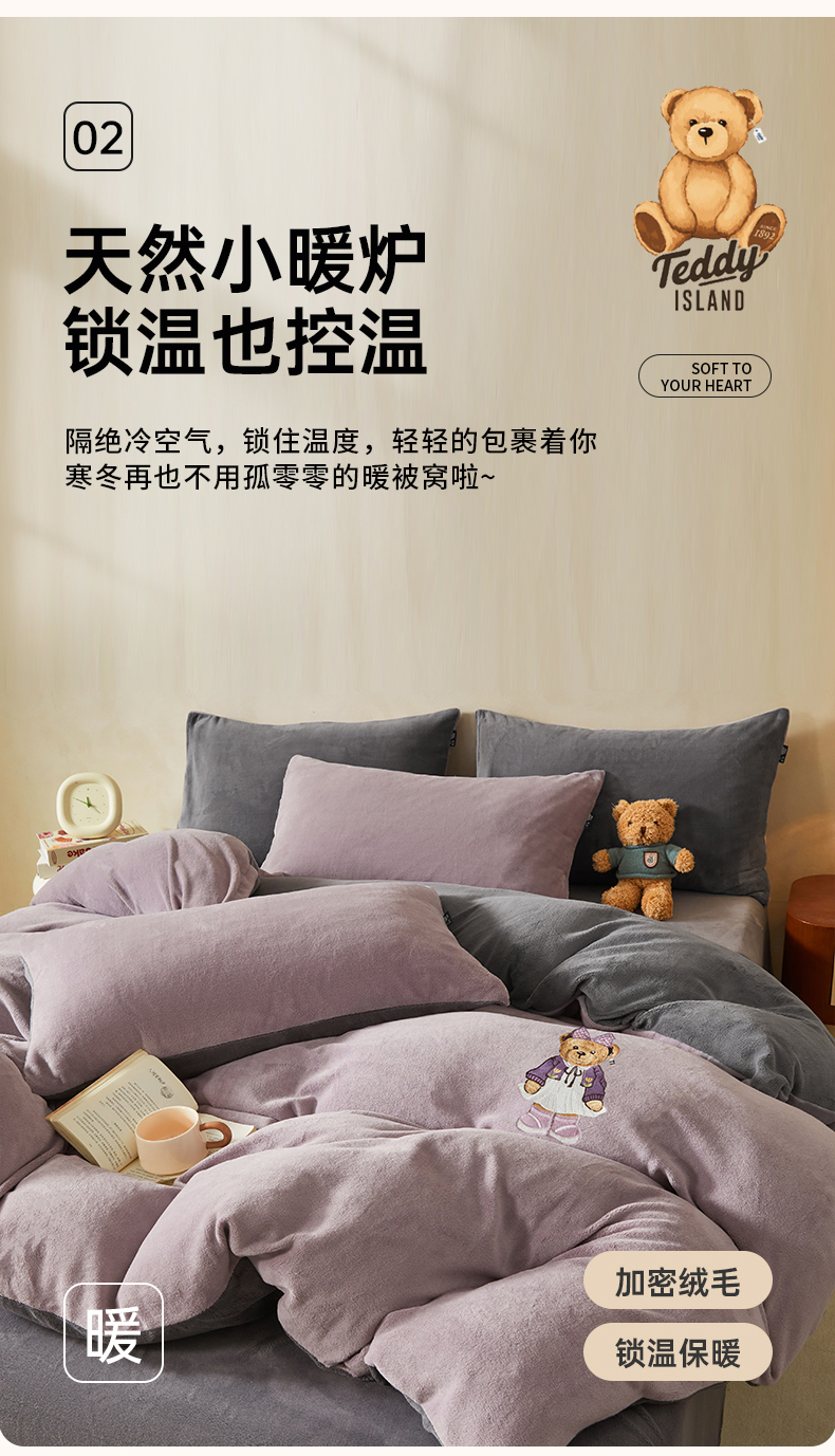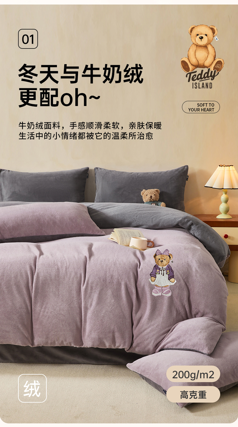 当前位置: 91家纺网 > 商品网购 > 床品套件 > 四件套 > 牛奶绒四件套 > 尚品本色 2025新款牛奶绒绣花四件套 香芋紫+神秘灰