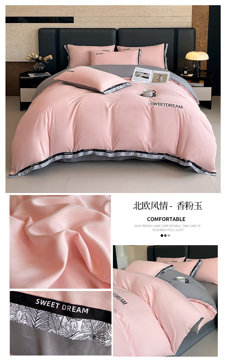 商品名称:(总)大麦乐田 2025新款法式轻奢碳素刺绣磨毛四件套-北欧风情