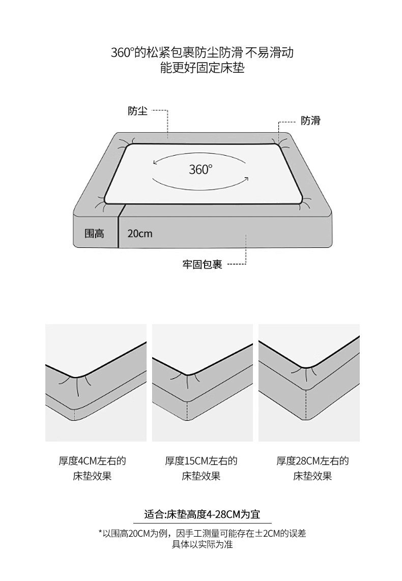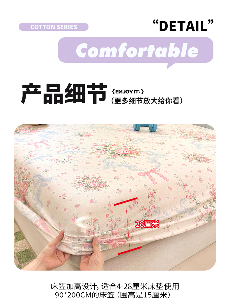 当前位置: 91家纺网 > 商品网购 > 床上用品 > 床笠 > 拾物记 2026新款第一批12868A类全棉单品床笠系列(床笠宽度预留10厘米缩水尺寸, 90x200床笠高度15厘米,适合4-15厘米学生床垫使用,其他尺寸床笠高28cm 适合4-28厘米床垫使