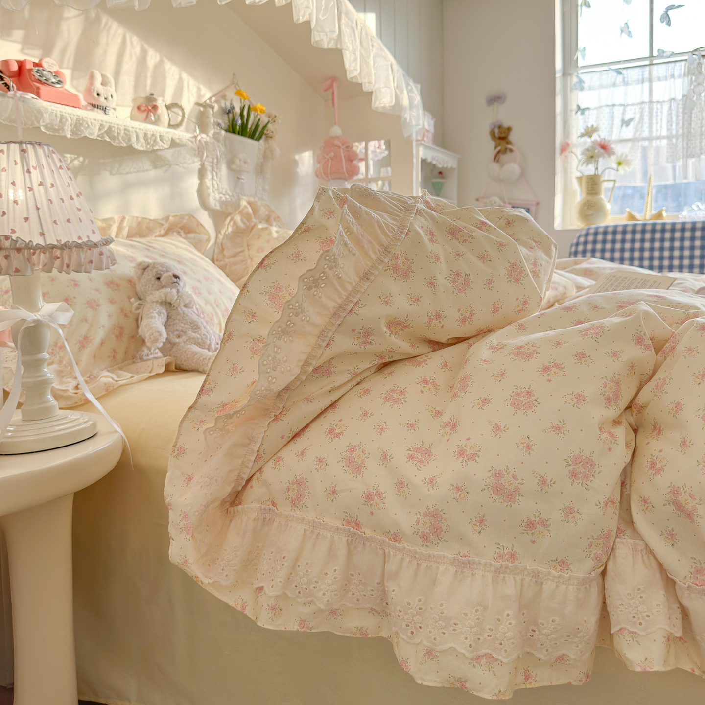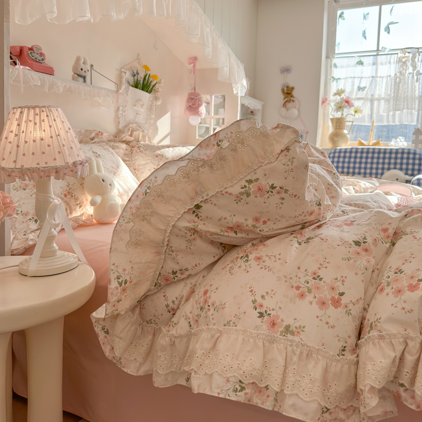 (总)锦彩家居 2026新款A类全棉纯棉韩式花边款小清新双层纱四件套-半糖主义系列 (提供买家秀),焦糖摩卡,梦幻蝶舞,奶油樱桃,软萌小兔,淘气泡泡