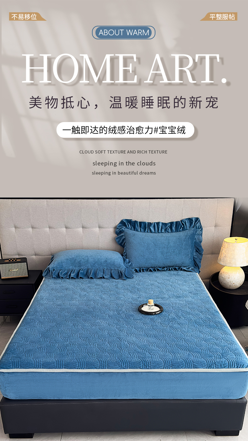爱彼家纺 2025冬季新款水晶宝宝绒床笠单品床笠床笠单件床笠三件套 宝宝绒床笠-浅兰