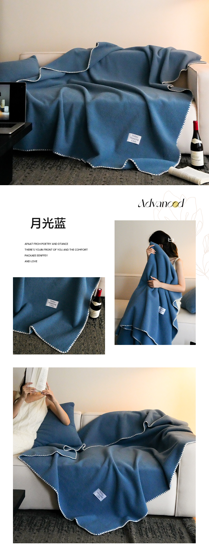 商品名称:三味舒屋 2025新款Today Sleeping仿生羊毛绒复合毛毯盖毯(全平台控价券后不低于98/168/188) 月光蓝