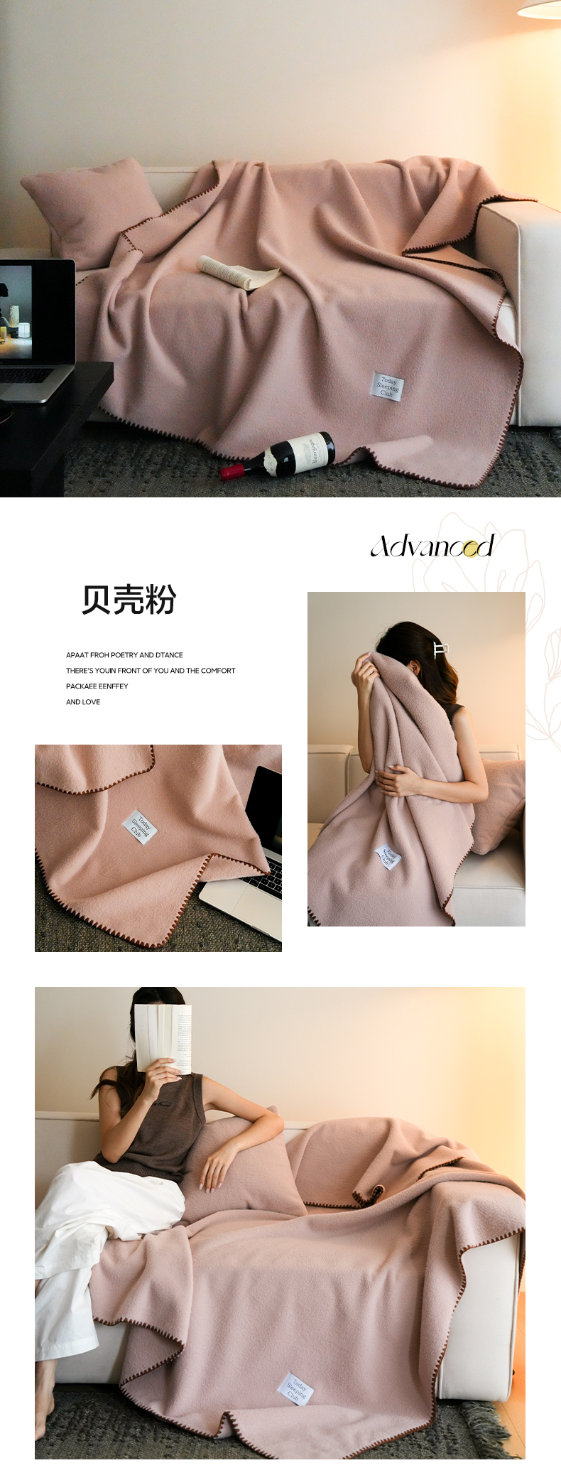 (总)三味舒屋 2025新款Today Sleeping仿生羊毛绒复合毛毯盖毯(全平台控价券后不低于98/168/188),贝壳粉,璀璨洋红,黑森林,栗子棕,原绒杏,月光蓝,芝士淡奶,组合图仅供展示不可下单