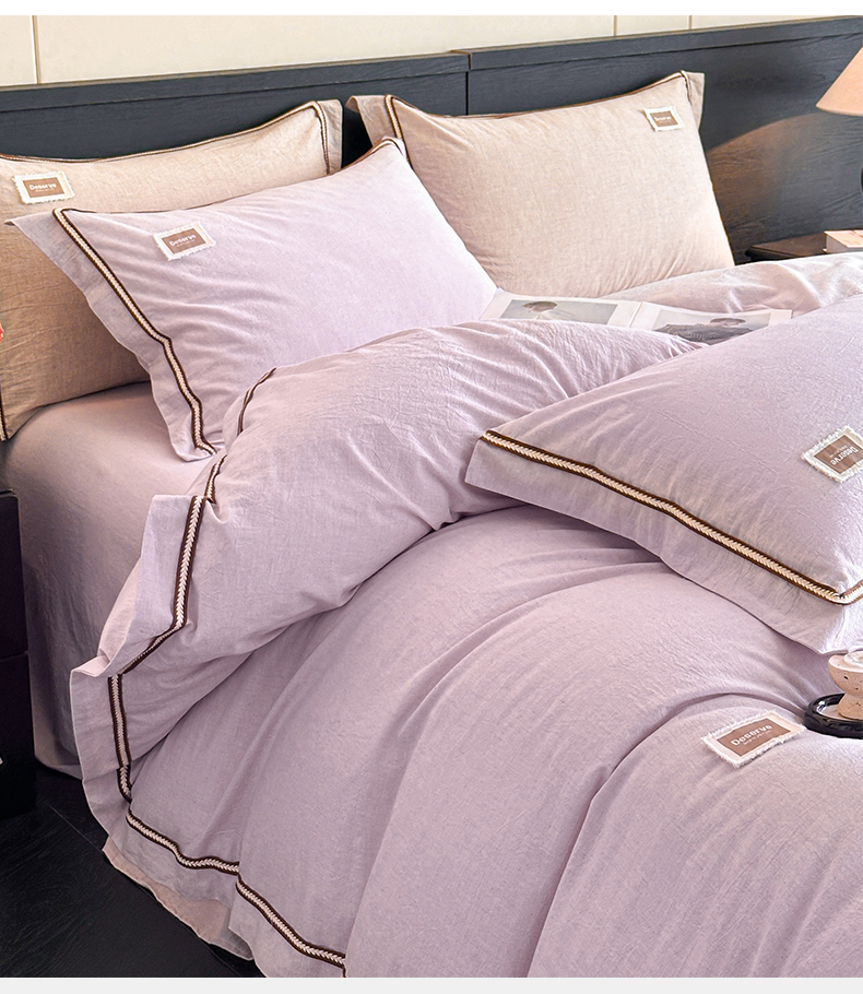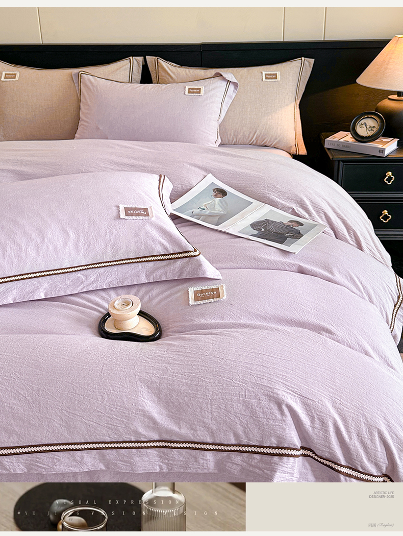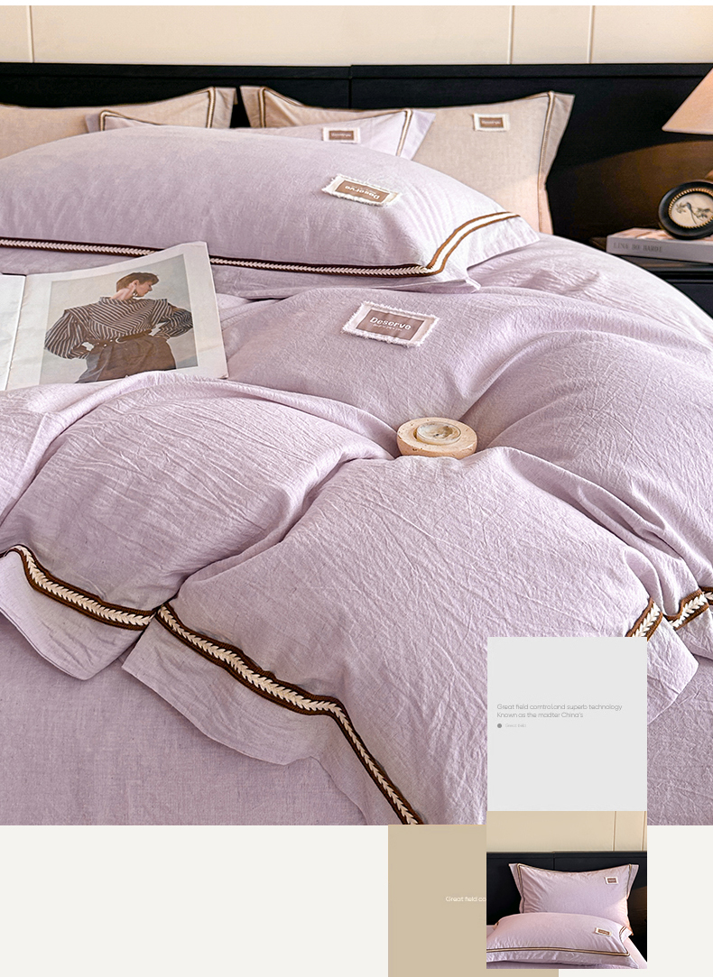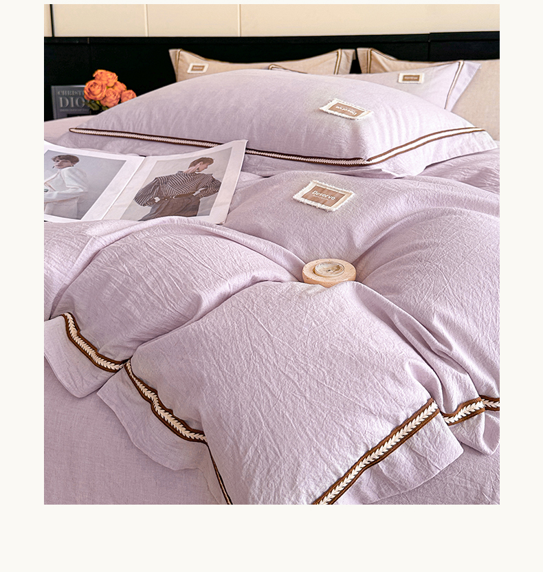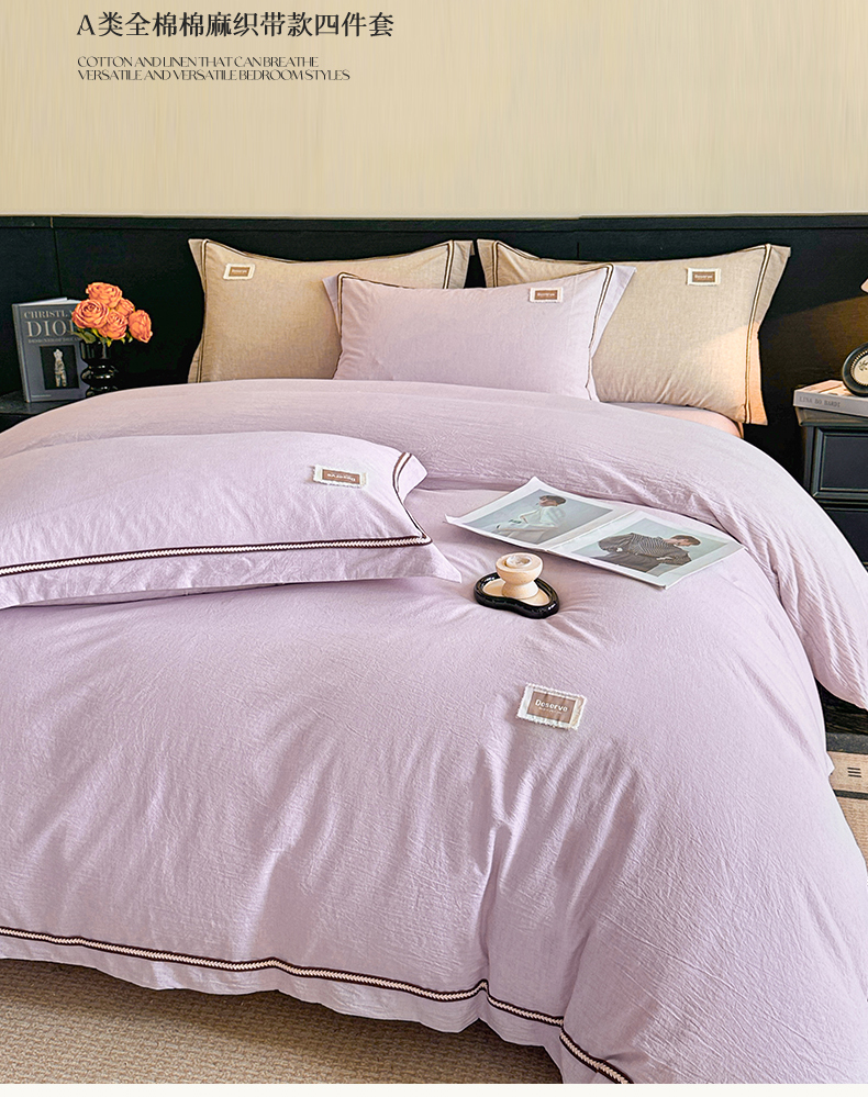 笙意家纺 2025新款A类全棉棉麻织带款四件套 织带款-浅紫