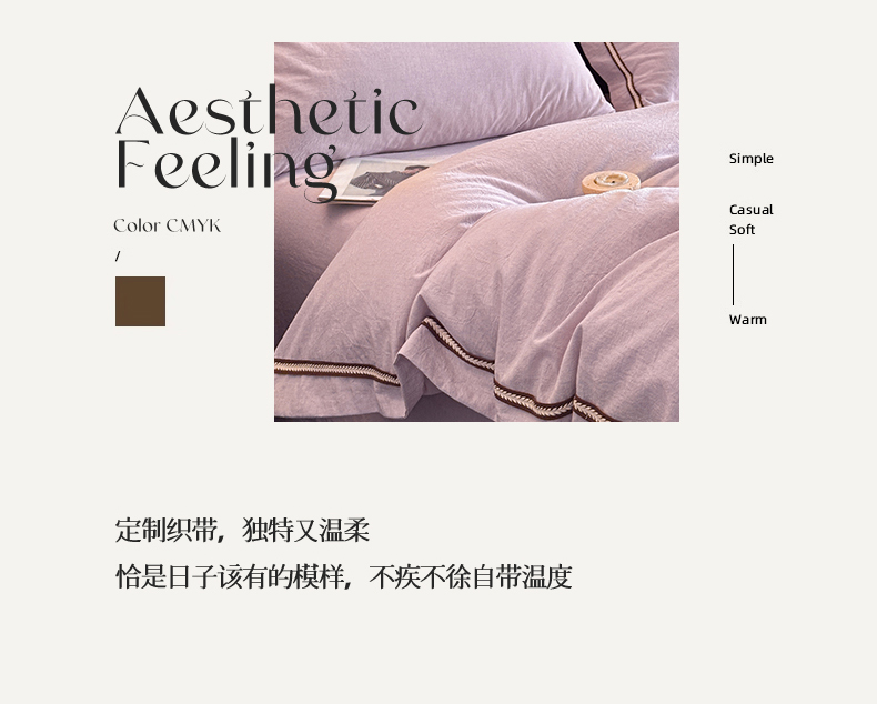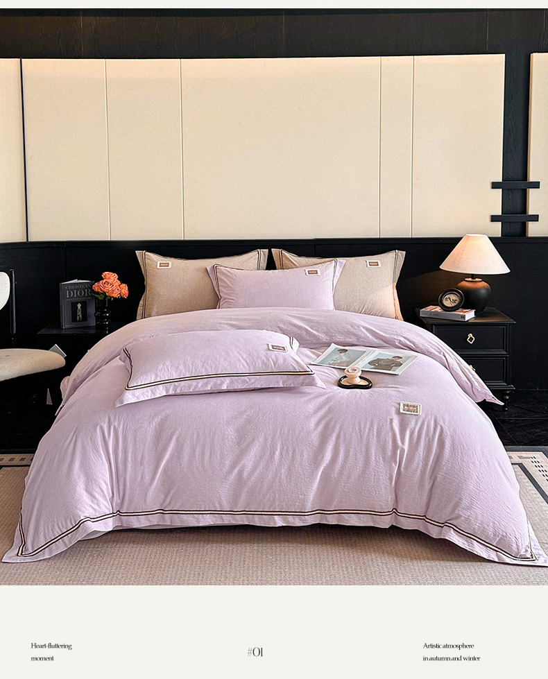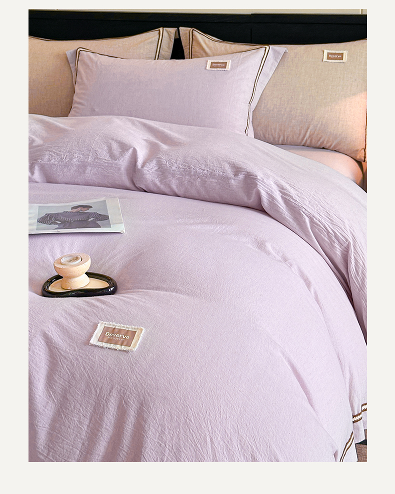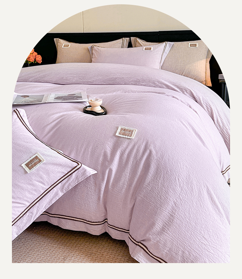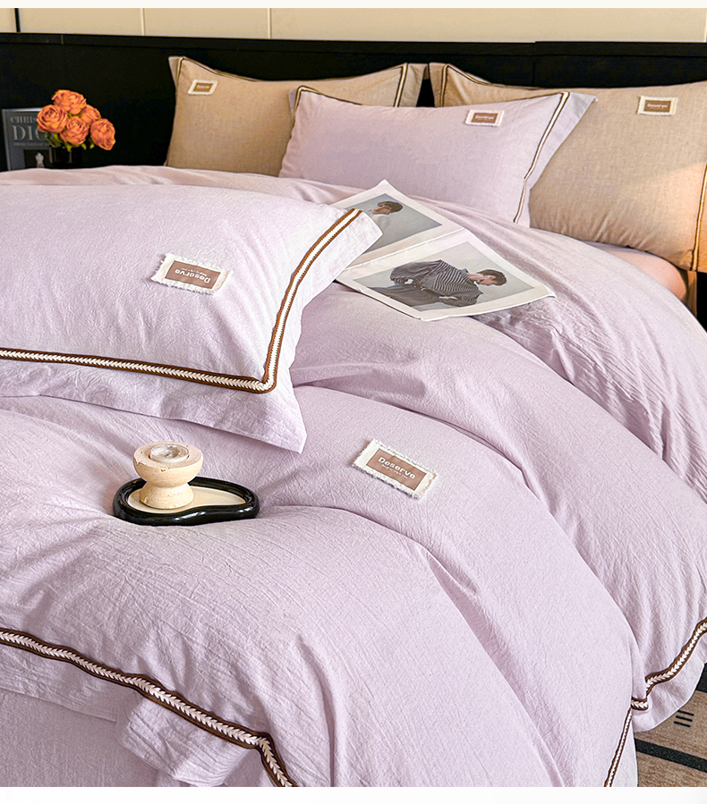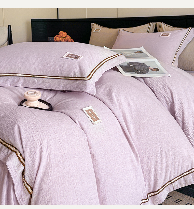 笙意家纺 2025新款A类全棉棉麻织带款四件套 织带款-浅紫