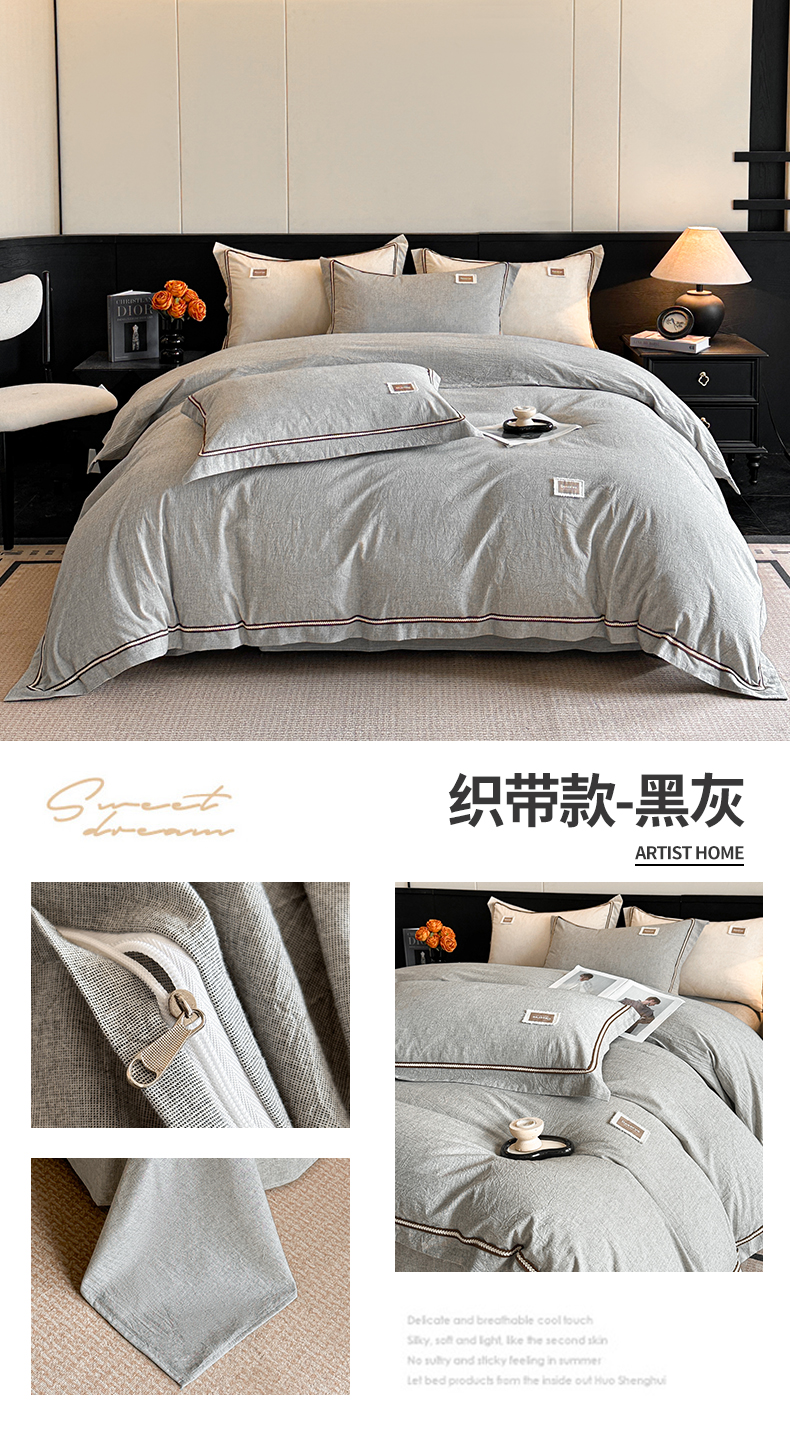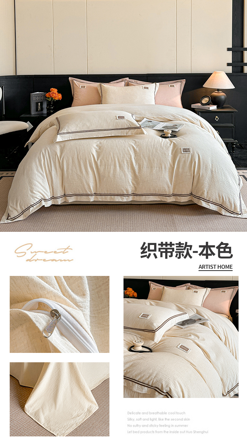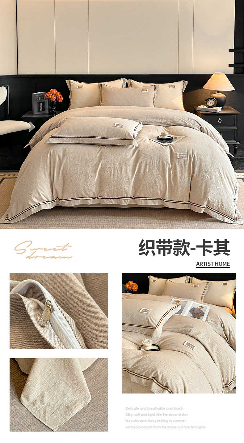(总)笙意家纺 2025新款A类全棉棉麻织带款四件套,织带款-本色,织带款-粉色,织带款-黑灰,织带款-卡其,织带款-浅紫