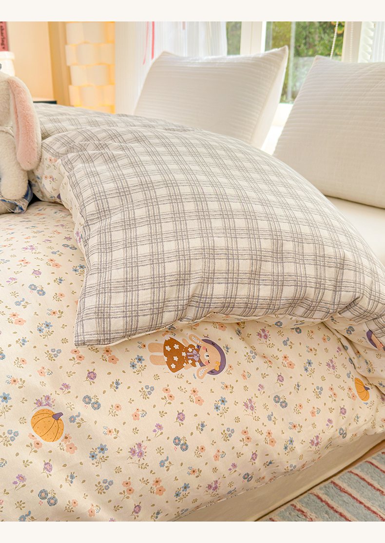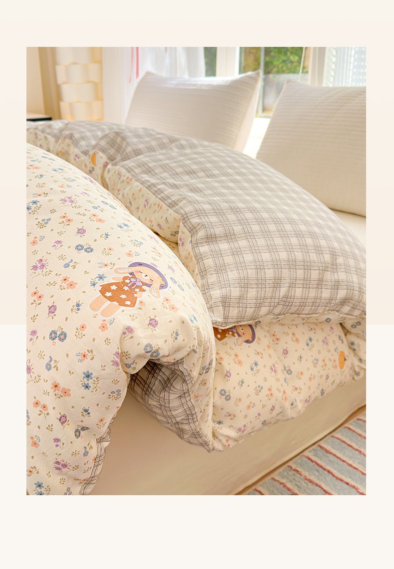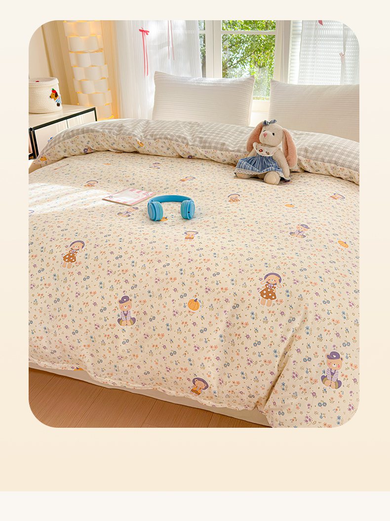 清雅福 2025新款全棉柔软印花系列单被套 碎花兔熊