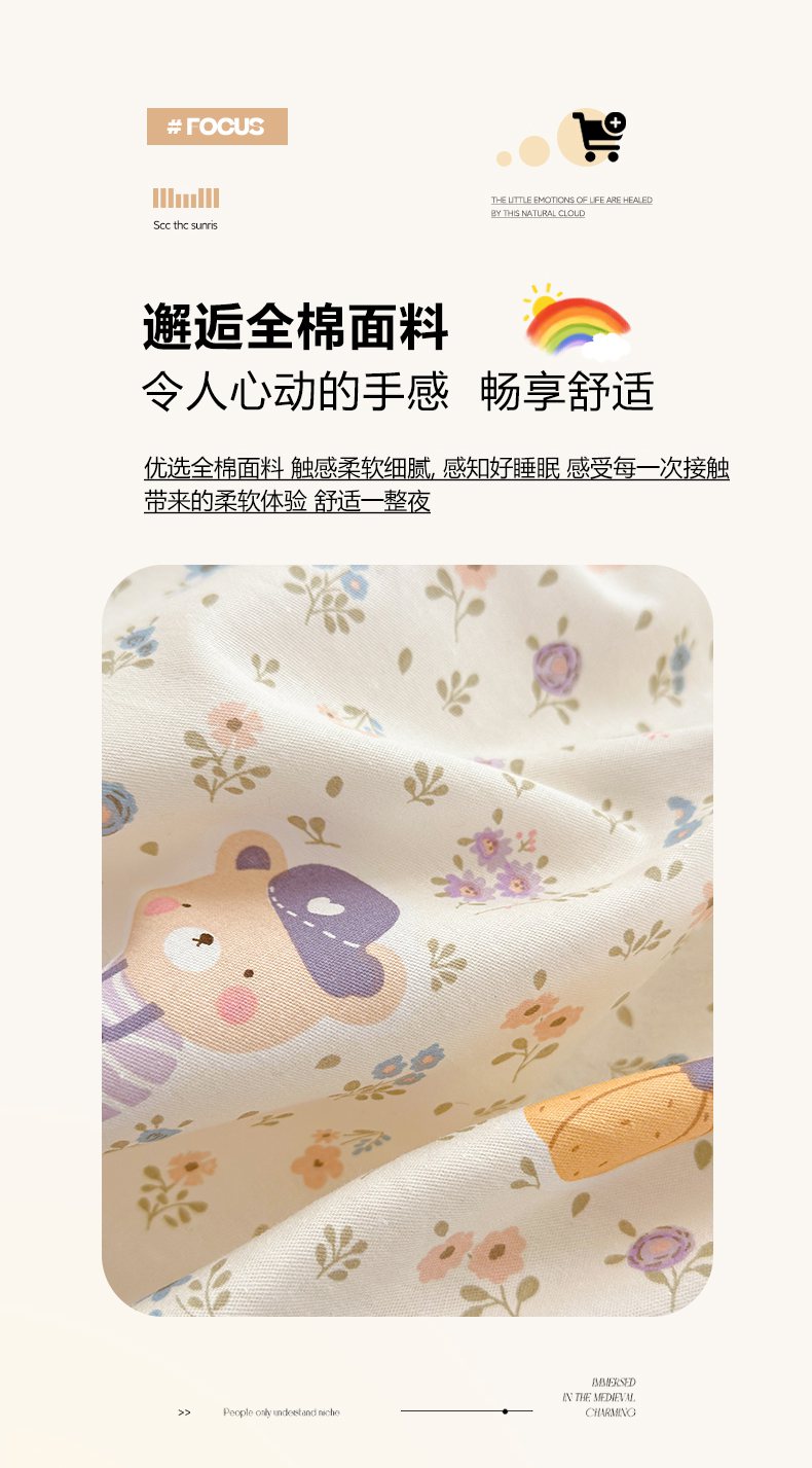 • 91家纺网 家纺一手货源 找家纺 清雅福 2025新款全棉柔软印花系列单被套 碎花兔熊