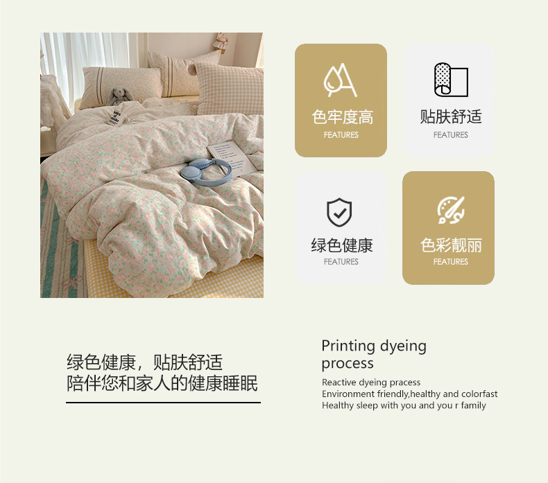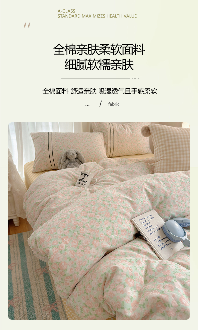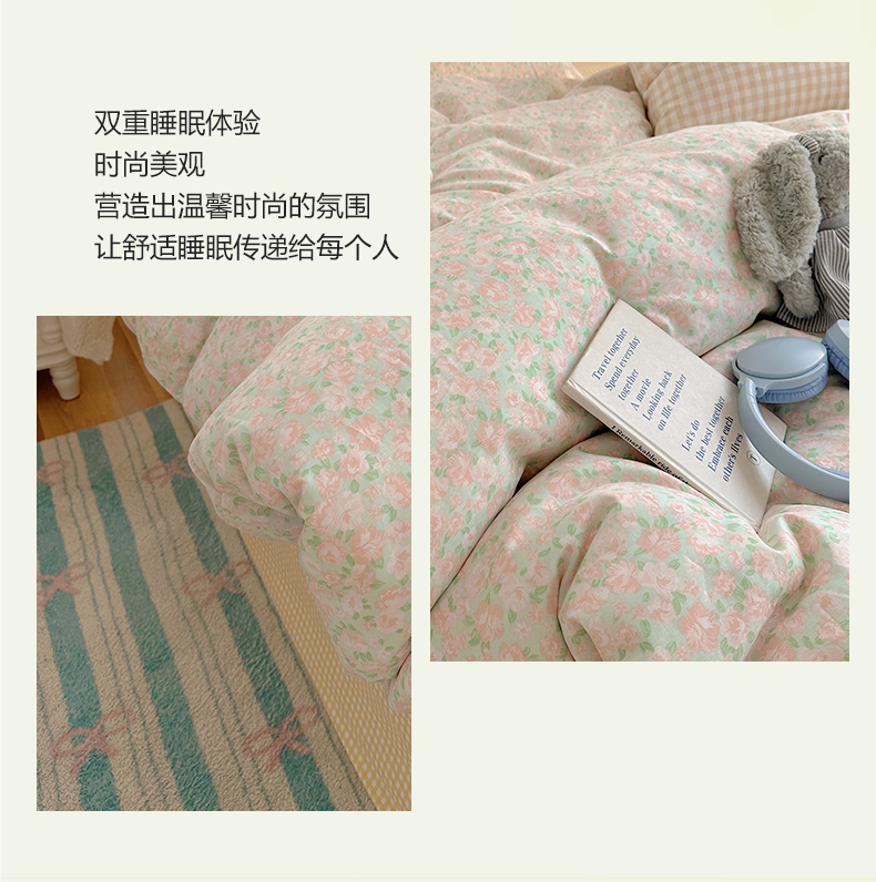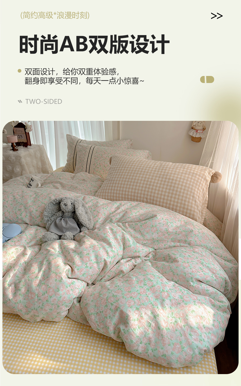 (总)三朵家纺 2026新款水洗棉碎花INS博主风混搭全棉四件套,漫花,莫里,南乔