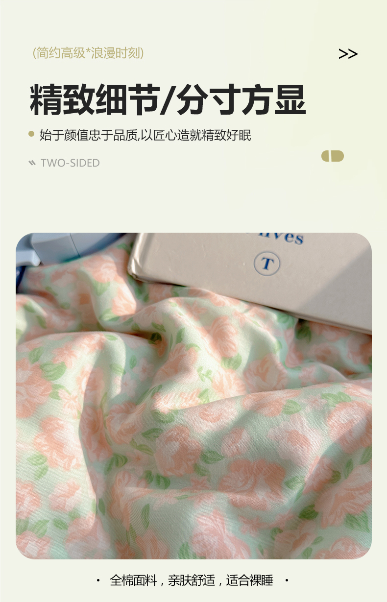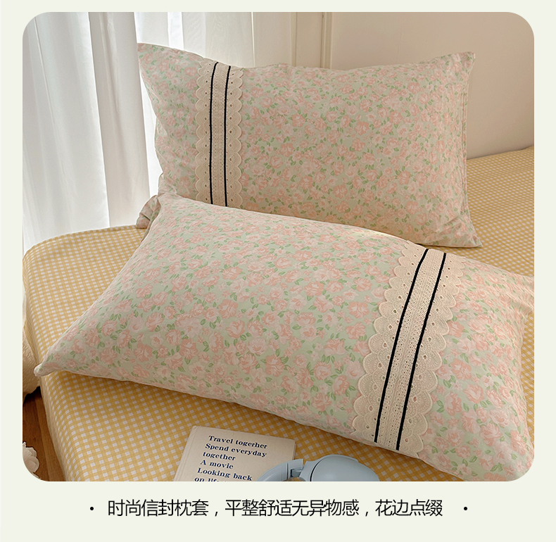 商品名称:三朵家纺 2026新款ins风全棉少女系花边印花系列四件套 浅浅花眠