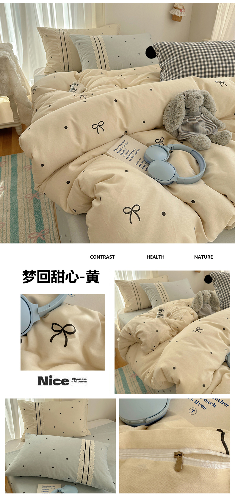 (总)三朵家纺 2026新款13070可爱INS风全棉四件套,芭蕾蝴蝶结,甜心樱桃,小樱桃-粉