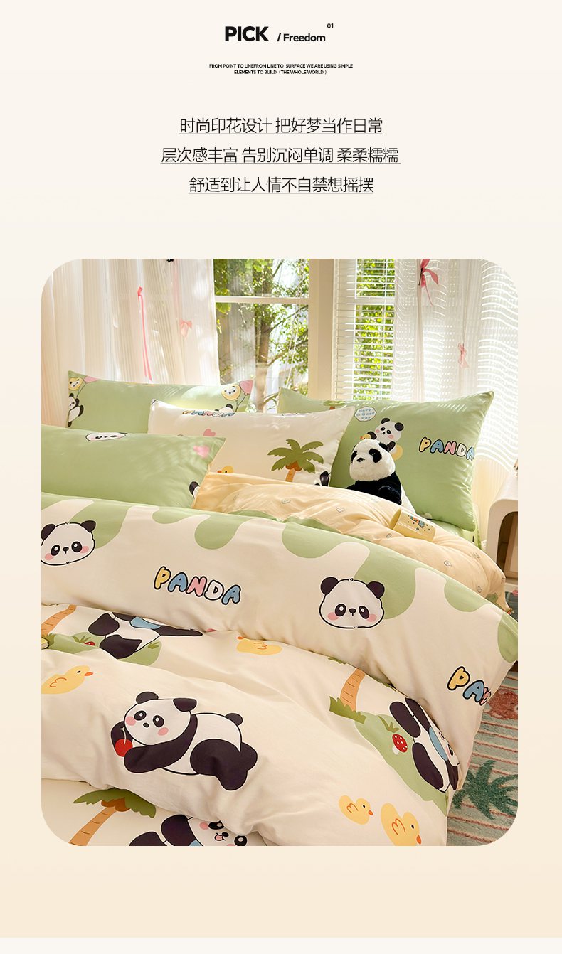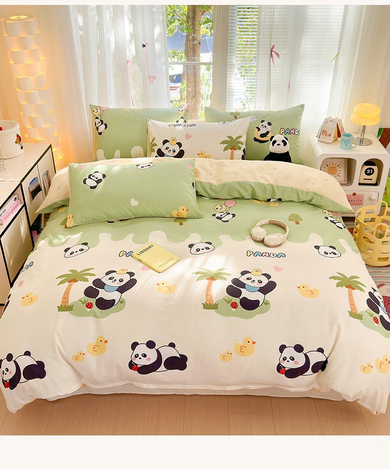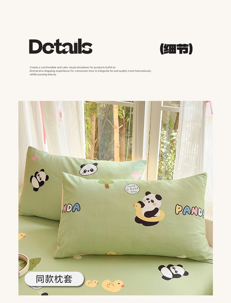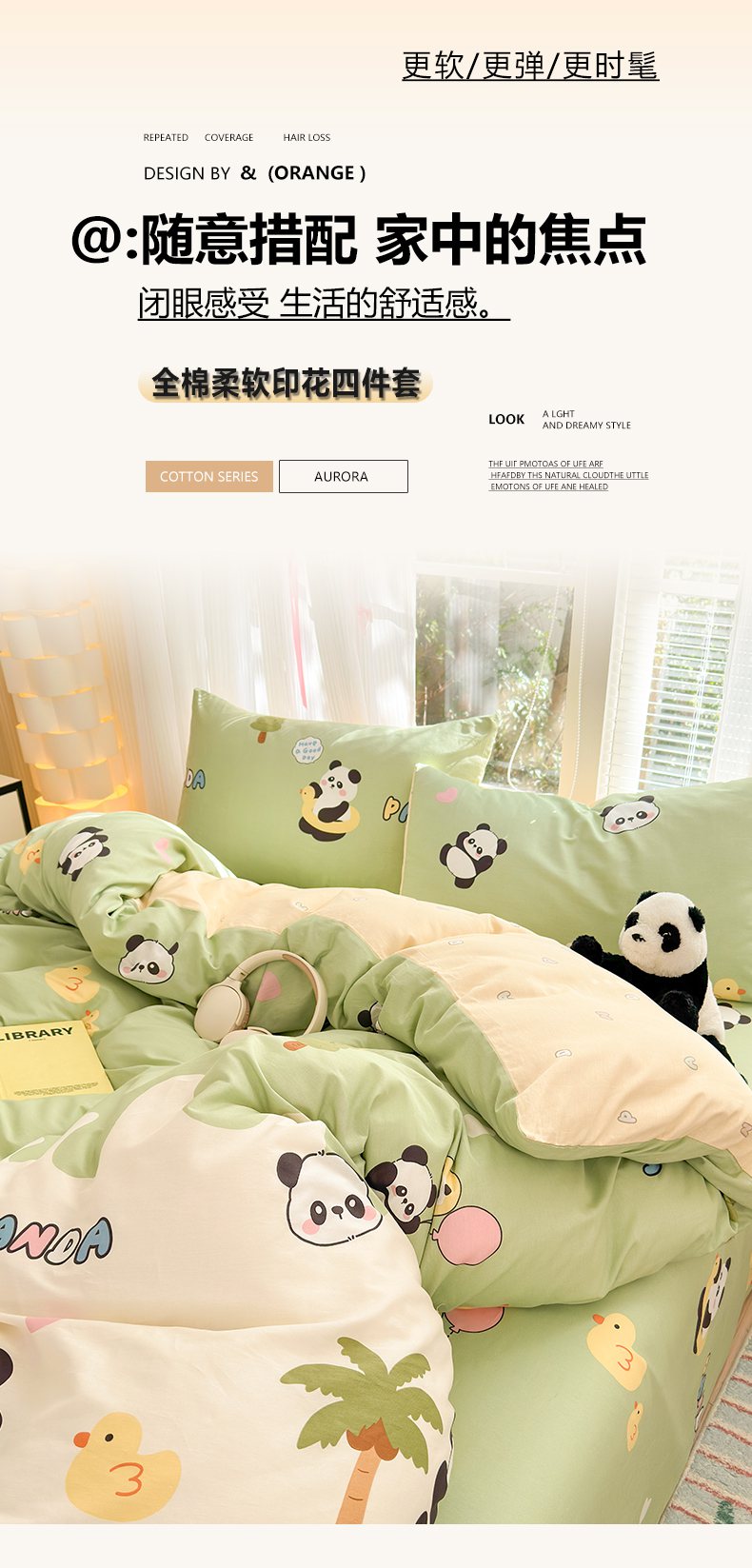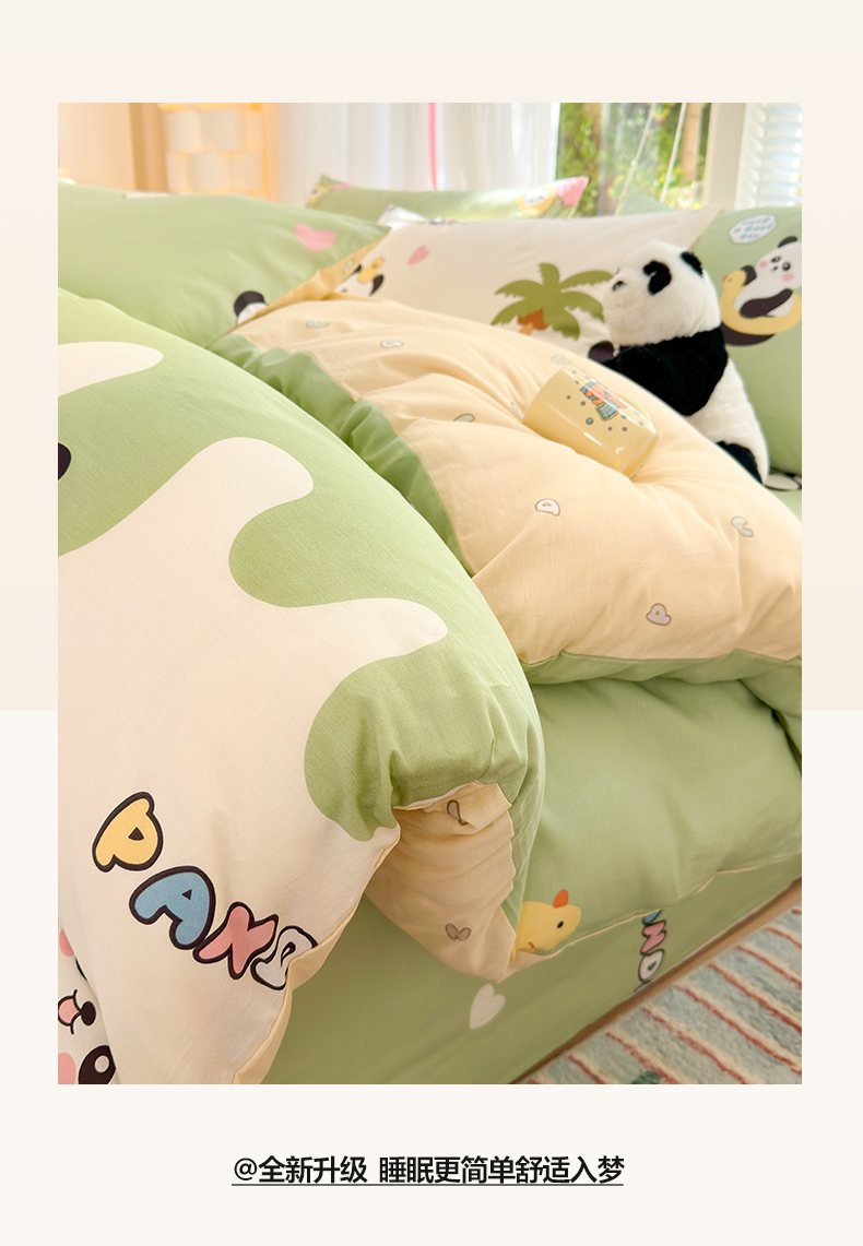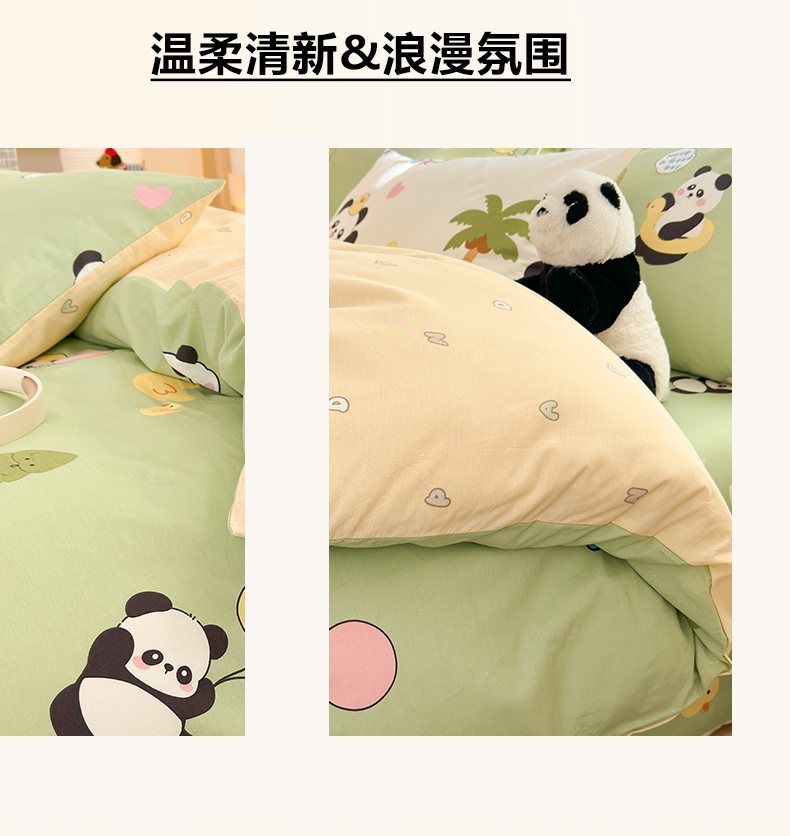 当前位置: 91家纺网 > 商品网购 > 床品套件 > 四件套 > 全棉普通四件套 > 清雅福 2025新款全棉柔软印花系列四件套 熊猫鸭鸭乐-绿