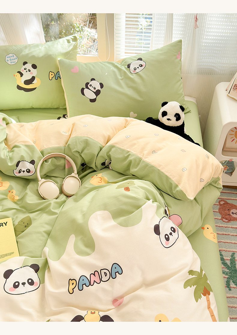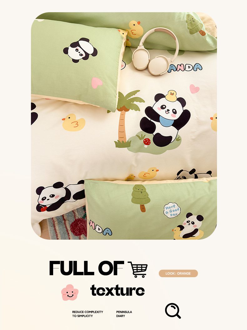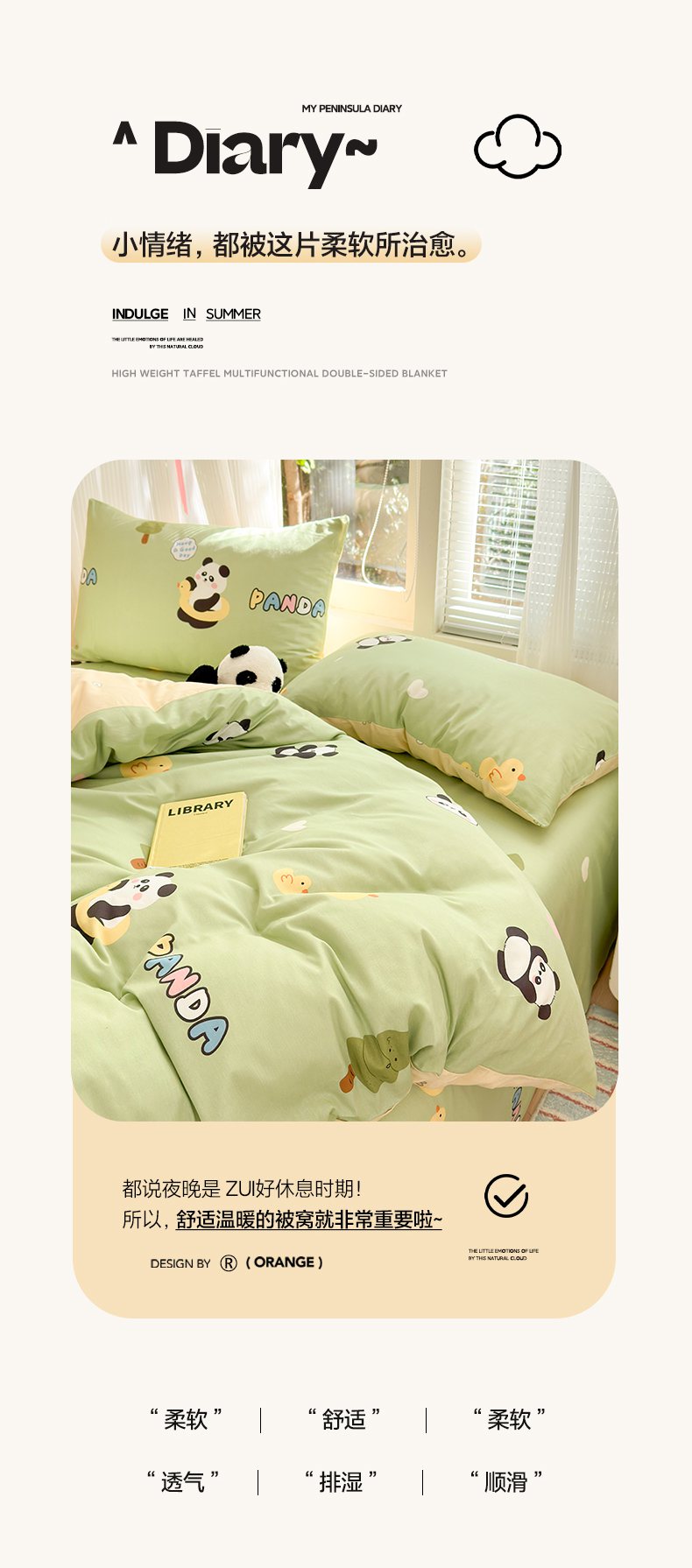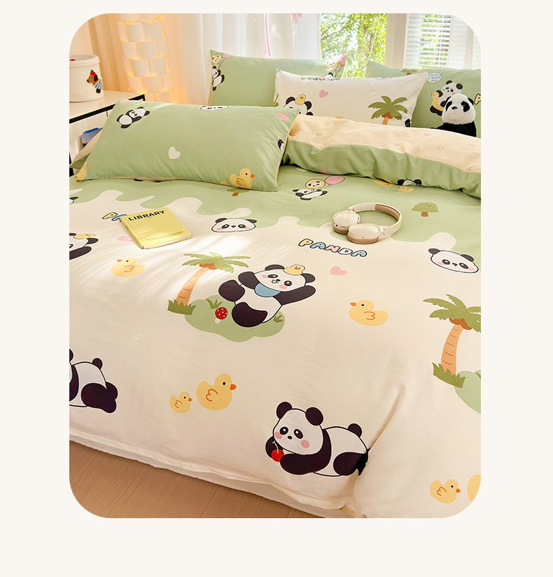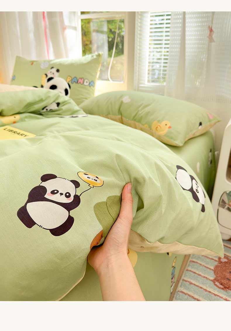 当前位置: 91家纺网 > 商品网购 > 床品套件 > 四件套 > 全棉普通四件套 > 清雅福 2025新款全棉柔软印花系列四件套 熊猫鸭鸭乐-绿