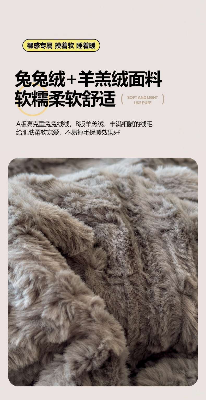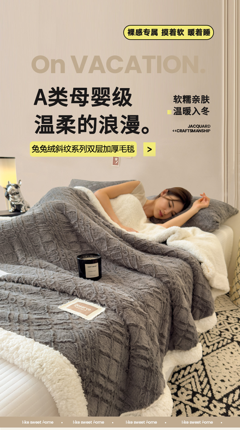 当前位置: 91家纺网 > 商品网购 > 毛毯休闲毯绒毯 > 毛毯 > 慕木家纺 2025新款A类高克重加厚兔毛绒双层毛毯斜纹条纹系列(跨境首选提供买家秀) 兔兔绒-斜纹-夜空灰