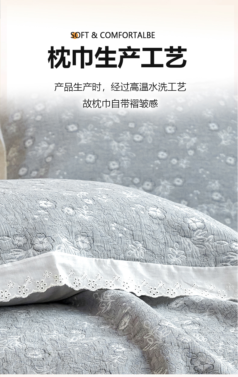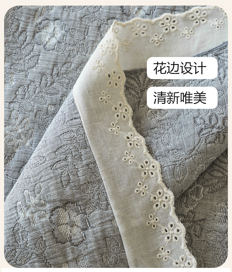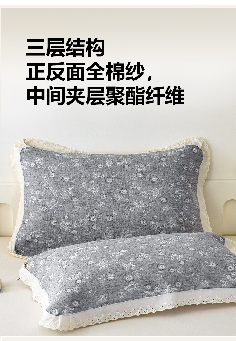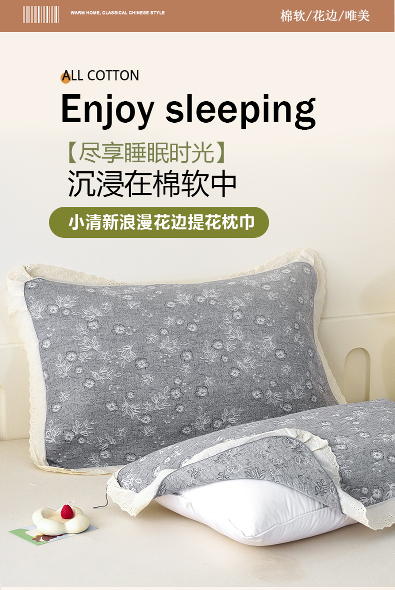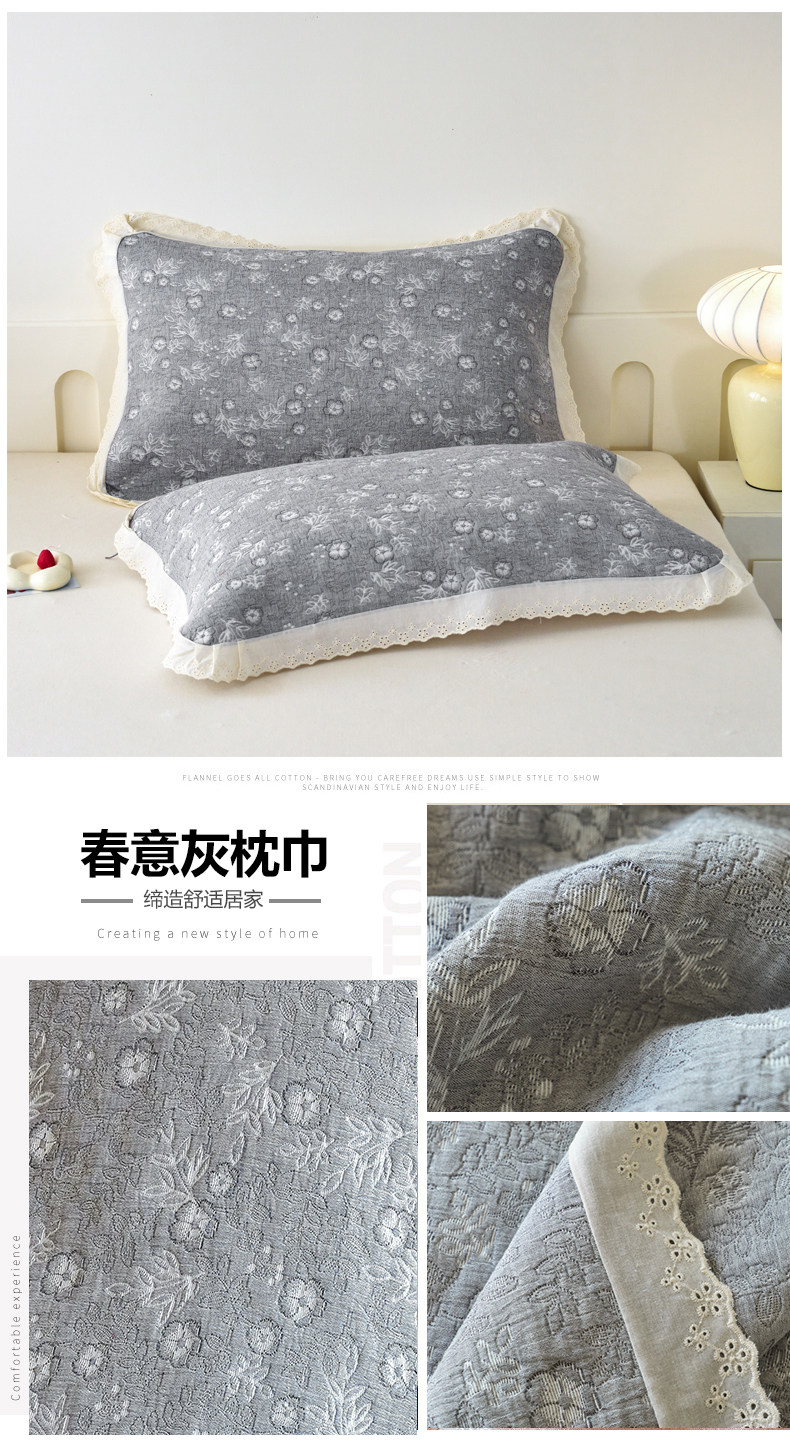 商品名称:棠薇家纺 2025新款花边款枕巾提花枕巾 花边春意灰