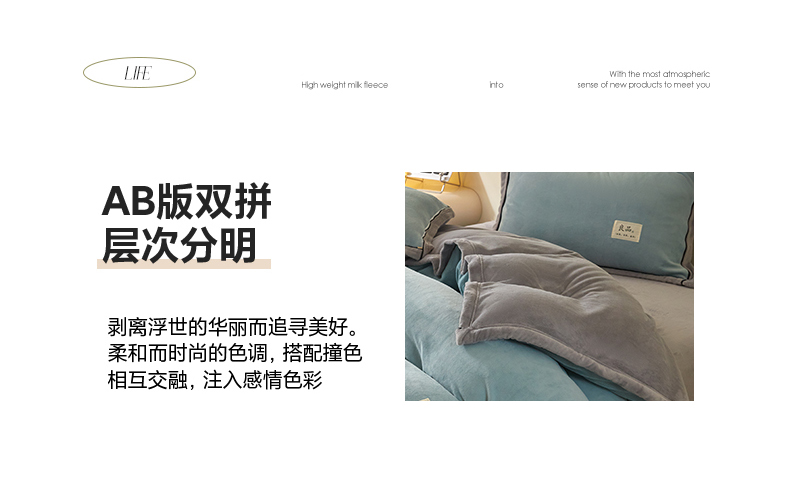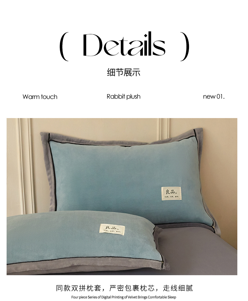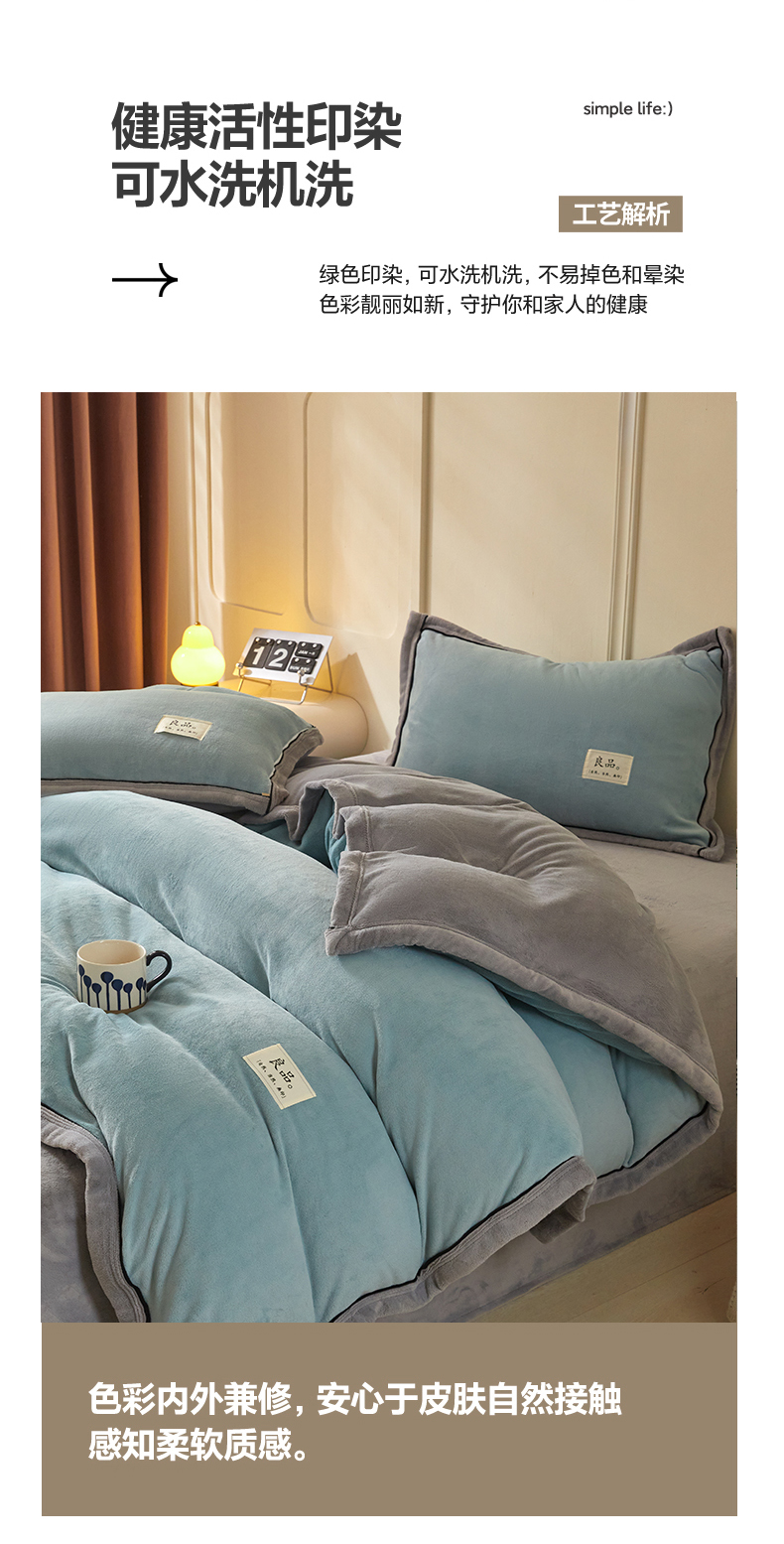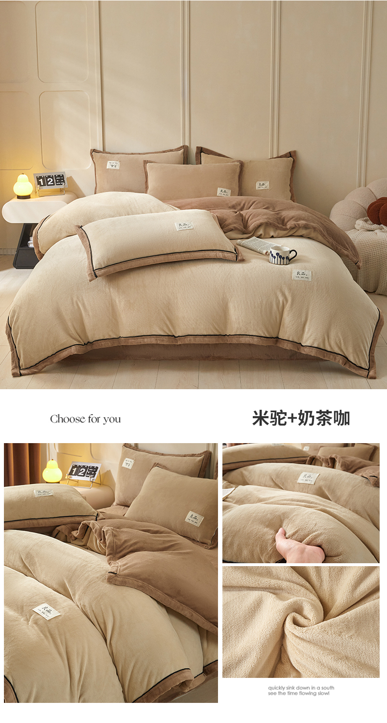 (总)慕木家纺 2025新款高克重简约无印风牛奶绒双拼四件套,宾利蓝+浅灰,米驼+奶茶咖,浅灰+米金,双拼套件-豆沙+灰