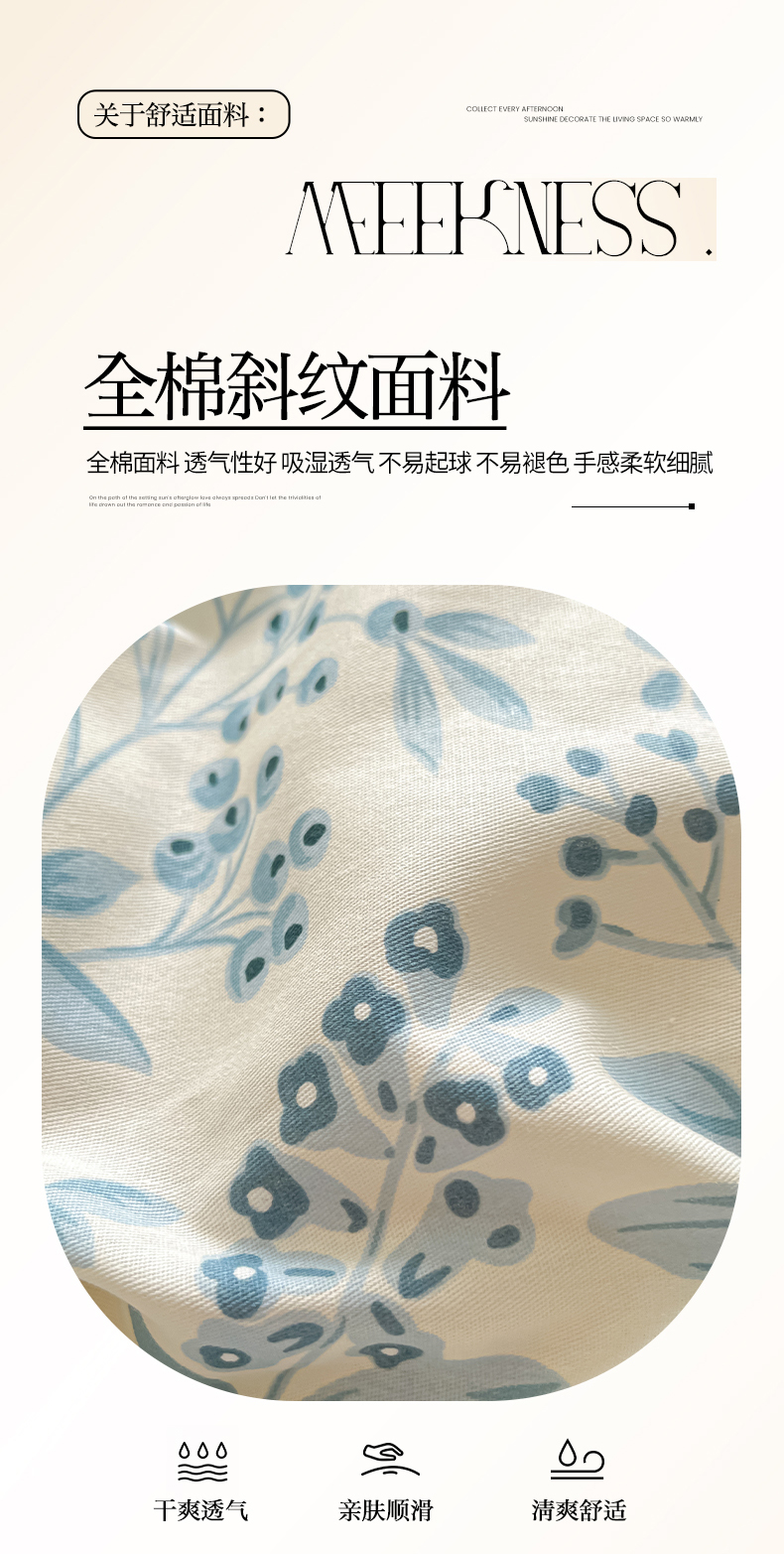 商品名称:花梦欣 2026新款全棉纯棉印花单品系列花卉款单被套被套单品单被套 蓝沫