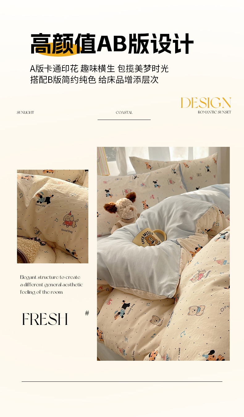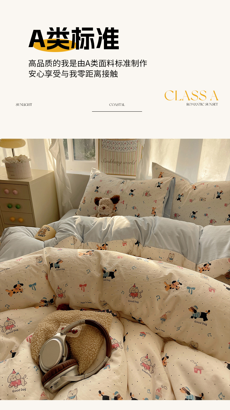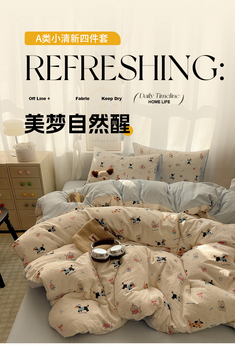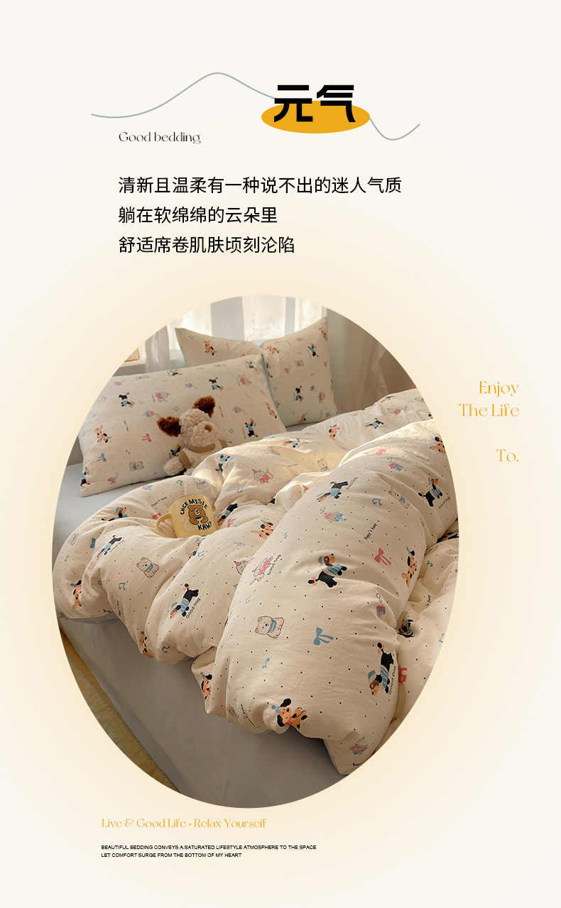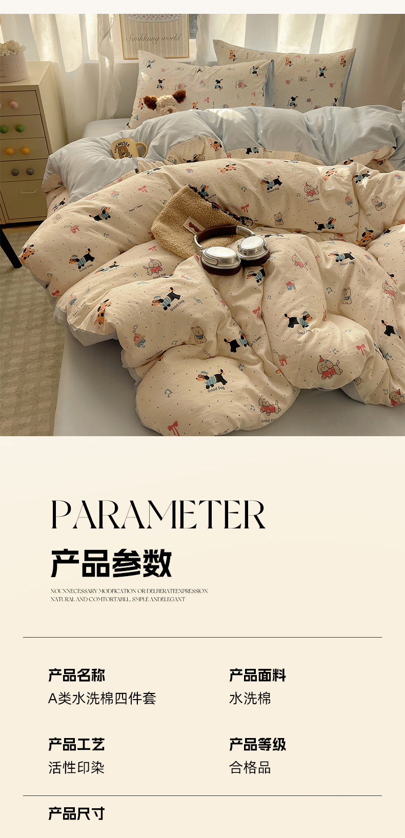 当前位置: 91家纺网 > 商品网购 > 床品套件 > 四件套 > 水洗棉四件套 > 沐芷 2026 A类105g水洗棉四件套超柔手感床上宿舍三件套床单被套 波点狗
