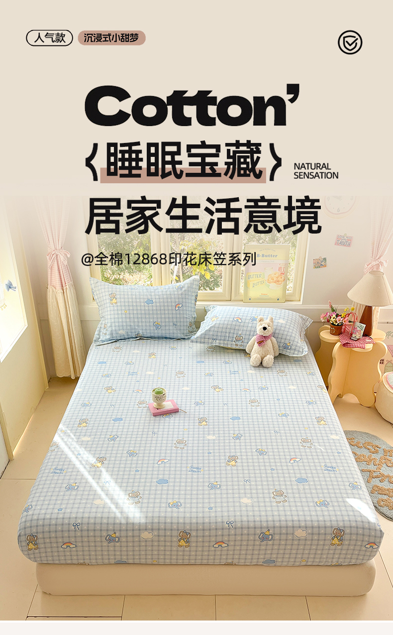 (总)莱通家纺 2025春夏新款12868纯棉印花学生单床笠 床笠单件(商家提供买家秀),波比狗,蛋糕熊,达乐宝贝,布兰卡,格利亚,格瑞,果酱电台,花花小汪,花田小狗,简昔,旧书折痕,奶呼兔兔,泡芙小狗,糖纸童年,调皮熊猫,童年趣事,童趣伙伴,新格拉,悬浮晶阵,英伦风,月光摇蓝草,云朵相馆,正交暮色