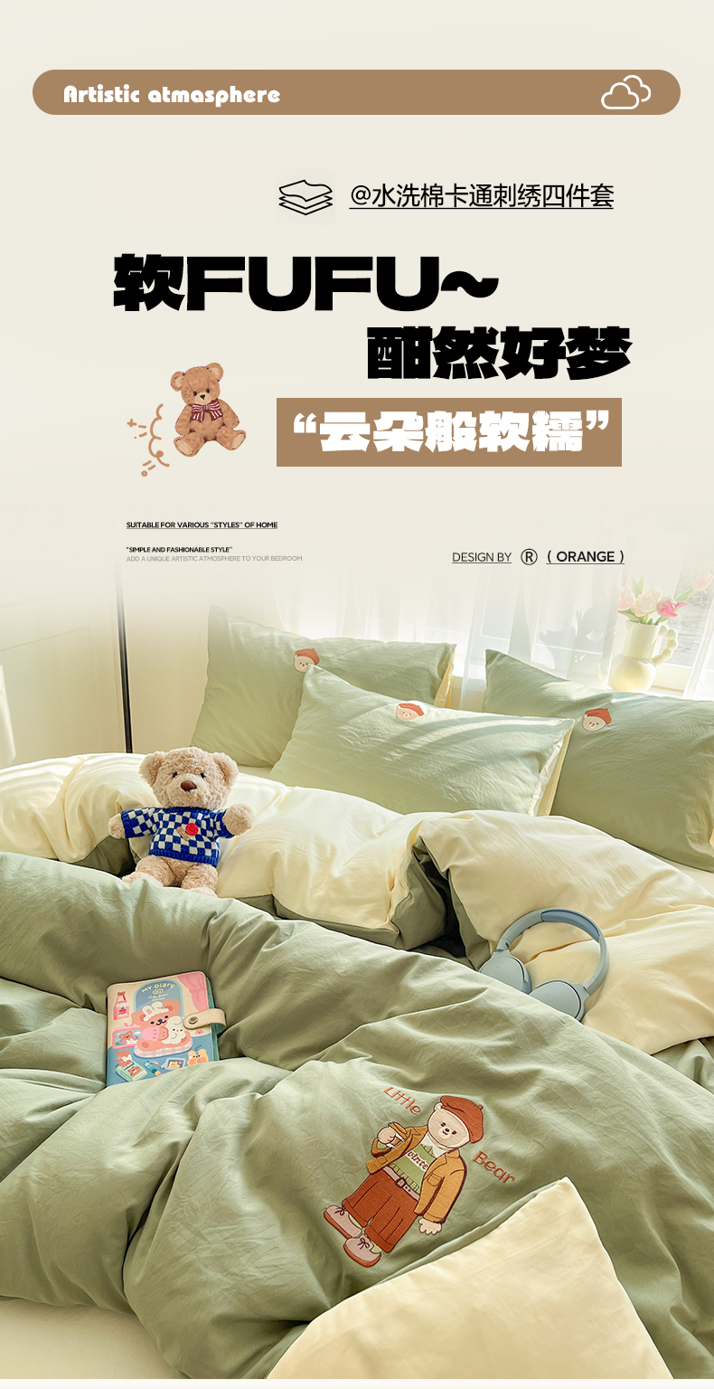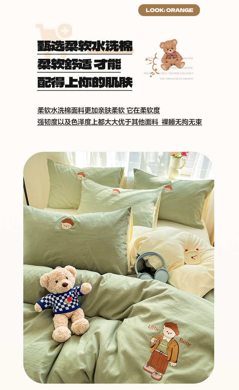 当前位置: 91家纺网 > 商品网购 > 床品套件 > 四件套 > 水洗棉四件套 > 优承佳生活馆 2026新款软糯云朵棉刺绣三件套四件套单被套小熊系列-系列一 咖啡熊