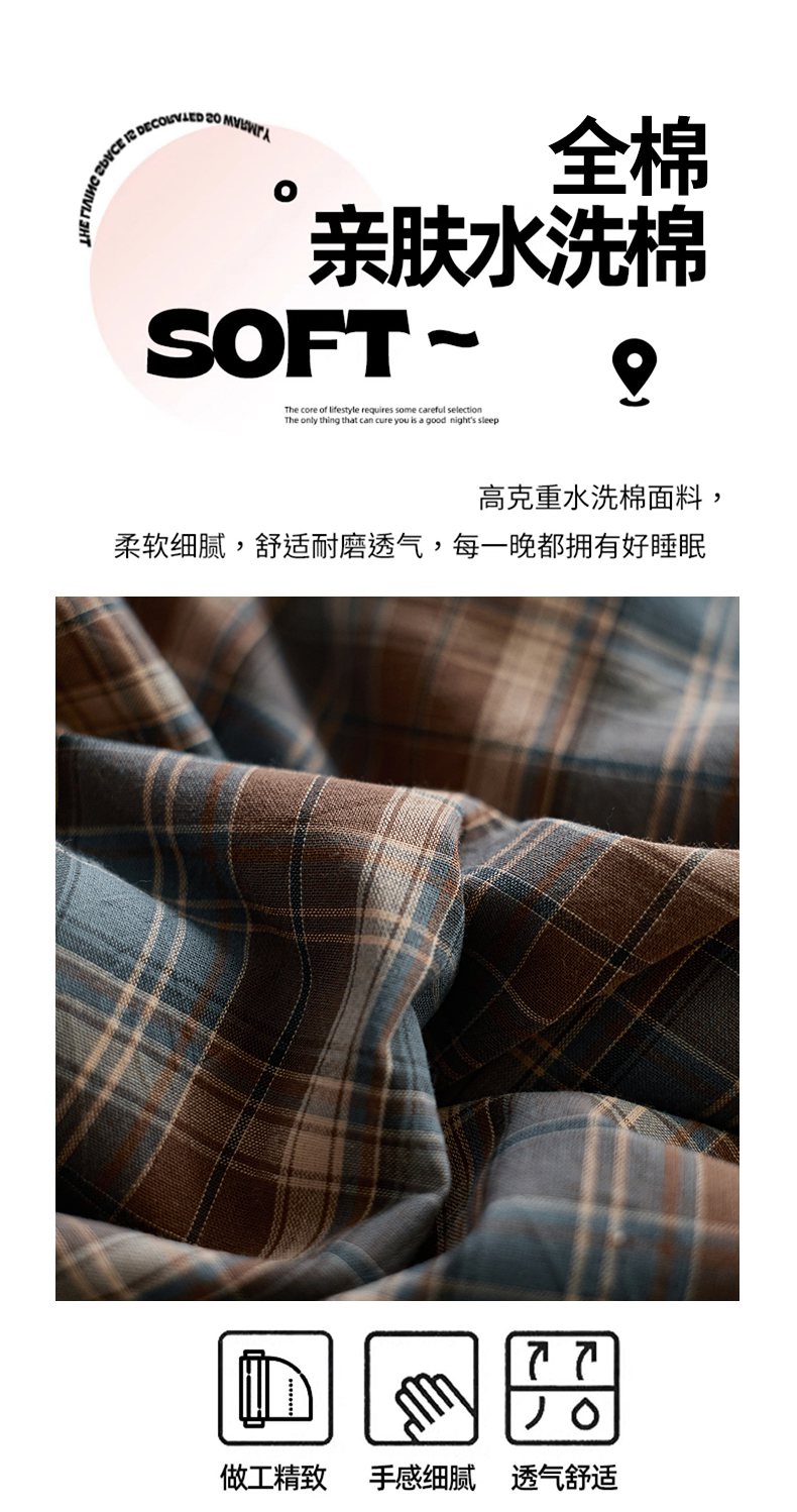 (总)启程家纺 2026新款纯棉水洗棉复古大格系列多规格纯棉四件套,摩登大黑,摩登大咖,摩登大绿,苏格兰藏蓝大格,苏格兰红大格,苏格兰黄大格,苏格兰蓝大格