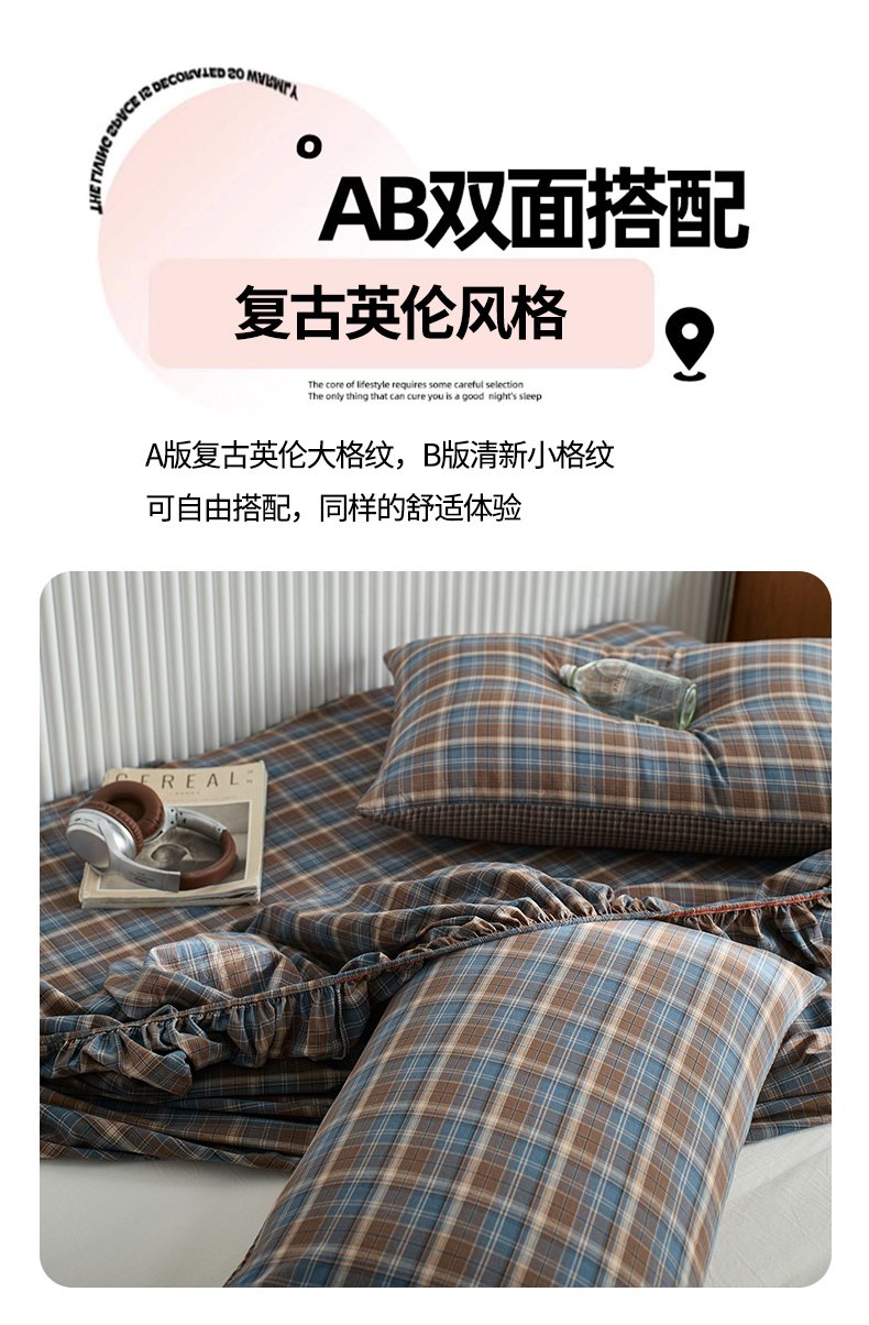 (总)启程家纺 2026新款纯棉水洗棉复古大格系列多规格纯棉床笠,摩登大黑,摩登大咖,摩登大绿,苏格兰藏蓝大格,苏格兰红大格,苏格兰黄大格,苏格兰蓝大格,组合
