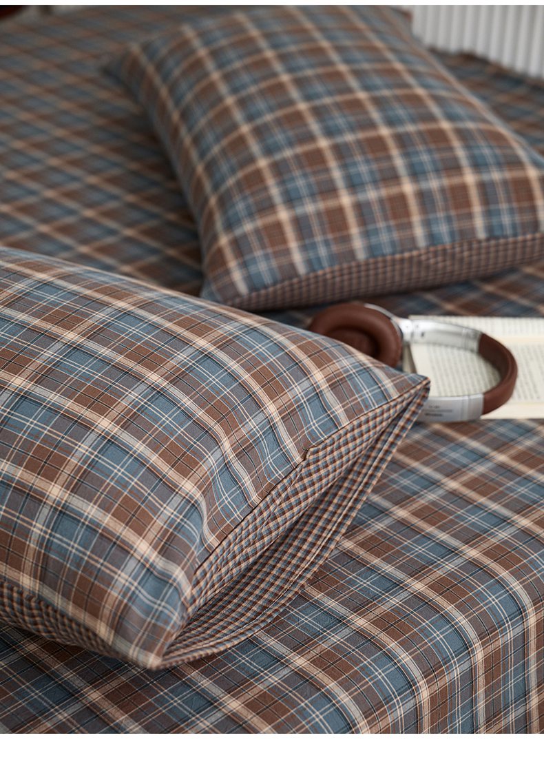 商品名称:启程家纺 2026新款纯棉水洗棉复古大格系列多规格纯棉枕套 苏格兰蓝大格