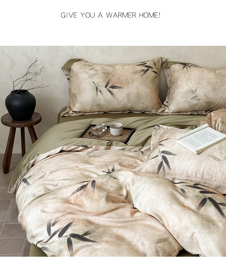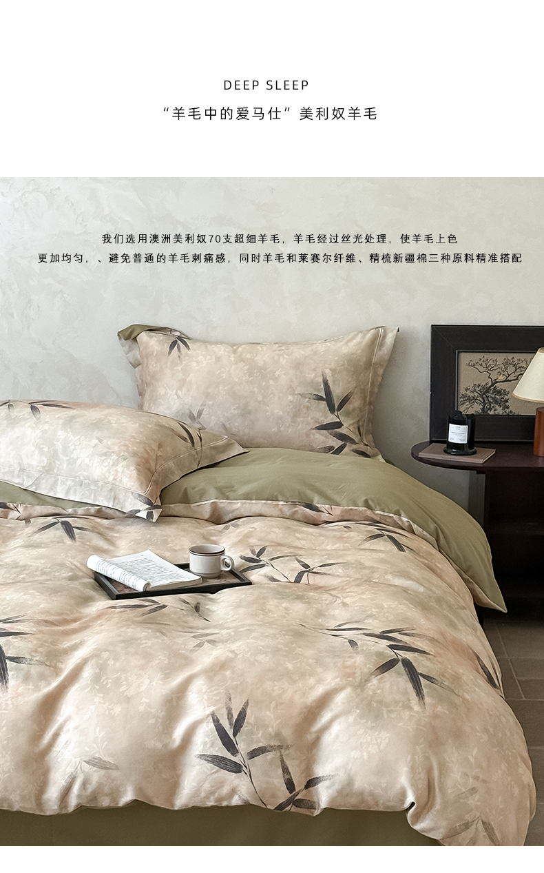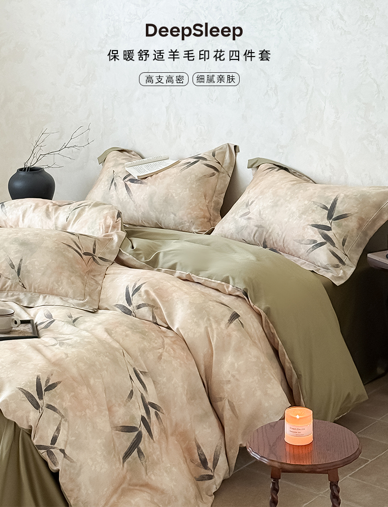 (总)Mr.pig猪先生水洗棉 2025新款保暖舒适羊毛印花工艺四件套,椿山,清欢-绿,棕-竹叶