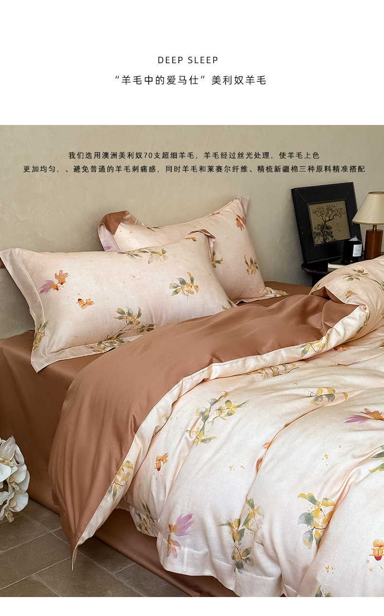 (总)Mr.pig猪先生水洗棉 2025新款保暖舒适羊毛印花工艺四件套,椿山,清欢-绿,棕-竹叶
