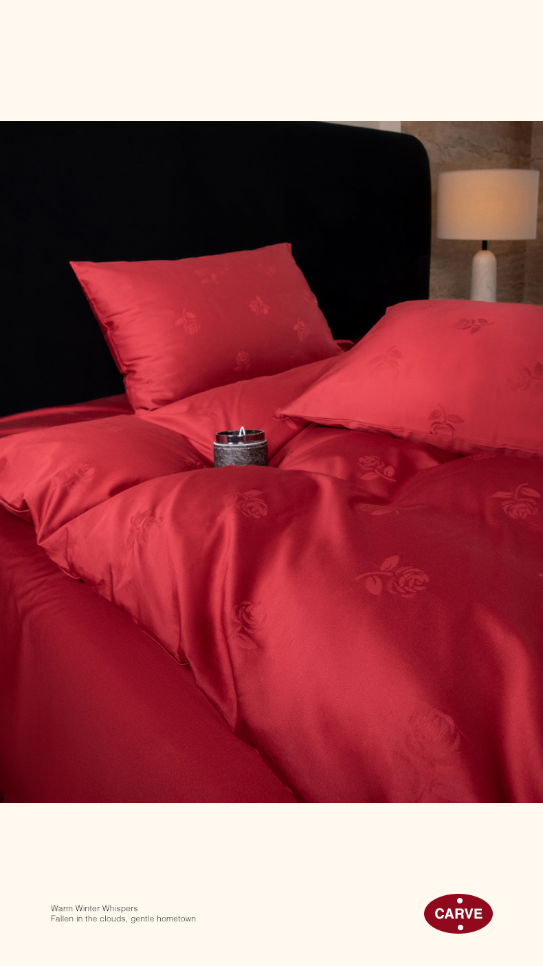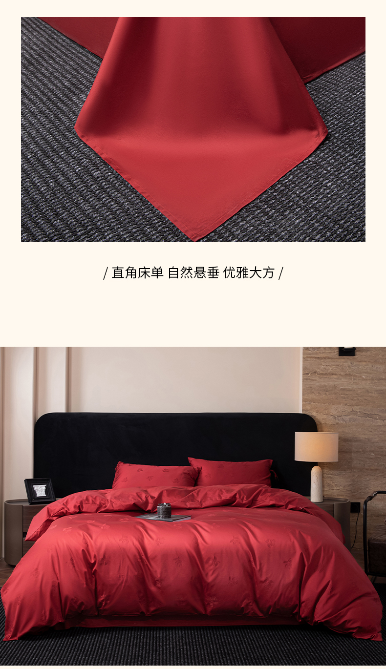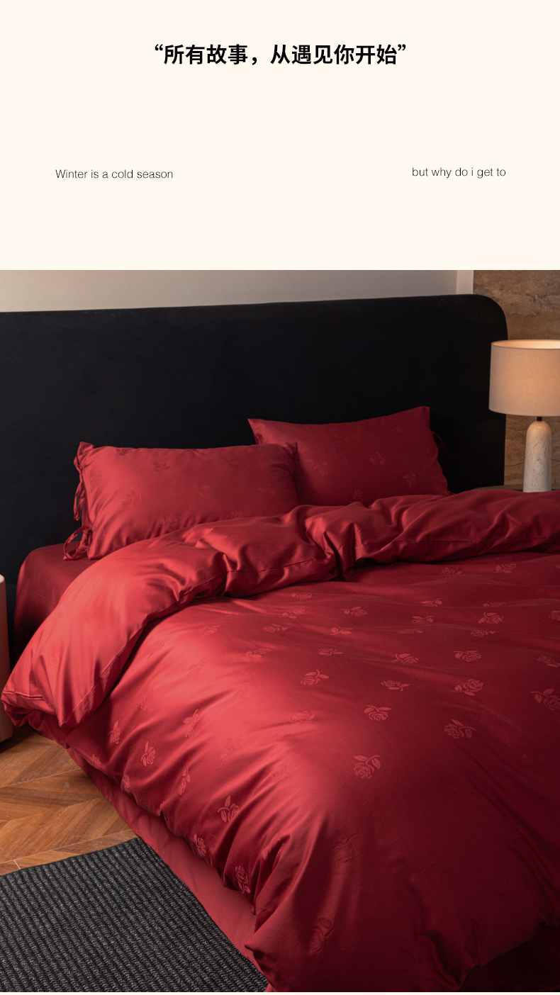(总)极简 2025新款秋冬款100S长绒棉精美提花系列四件套-红薇绣梦,红薇绣梦