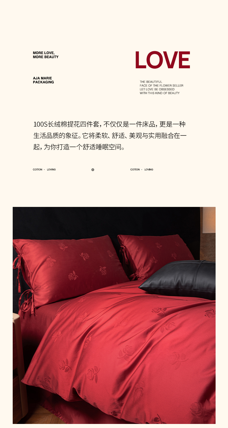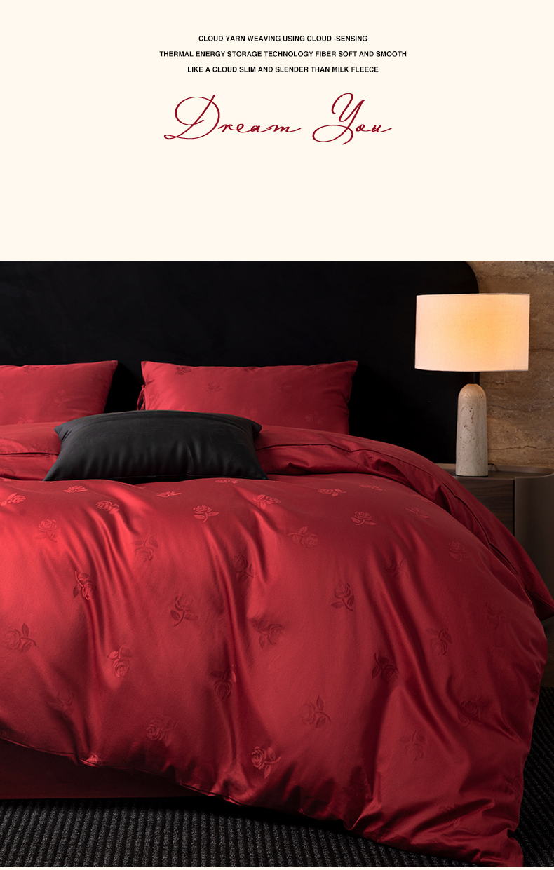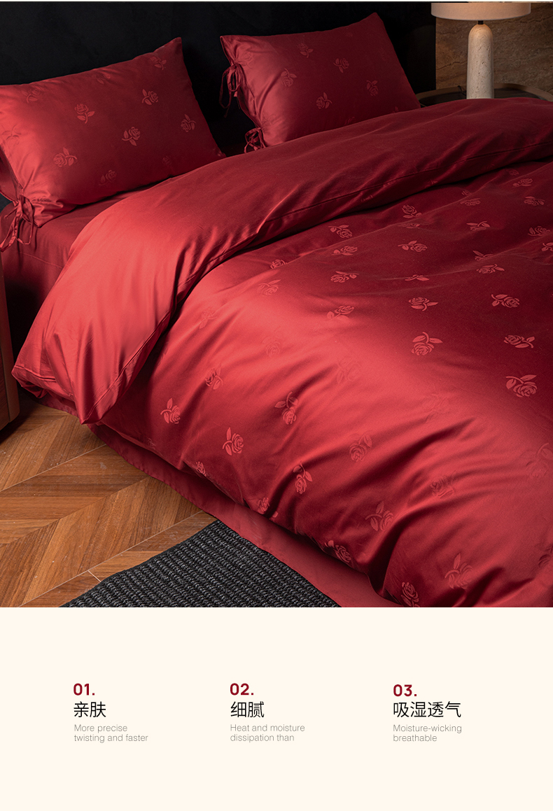 (总)极简 2025新款秋冬款100S长绒棉精美提花系列四件套-红薇绣梦,红薇绣梦