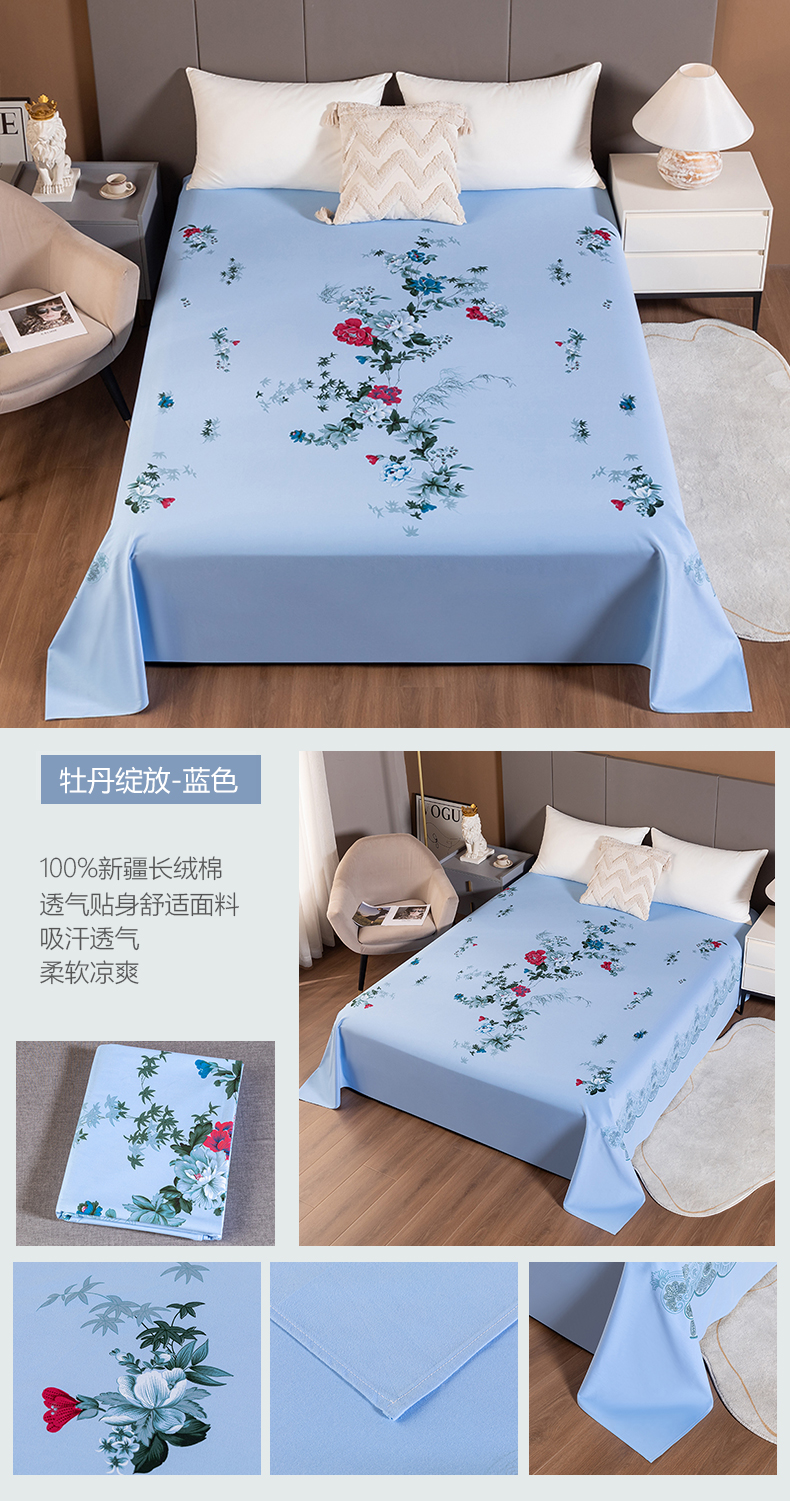 (总)居美良品 2025新款100%全棉纯棉国民老上海床单-牡丹飞燕,牡丹飞燕-淡玉,牡丹飞燕-米白,牡丹飞燕-抹茶绿,牡丹飞燕-浅粉,牡丹飞燕-天蓝,牡丹飞燕-紫色,组合图仅供展示不可下单