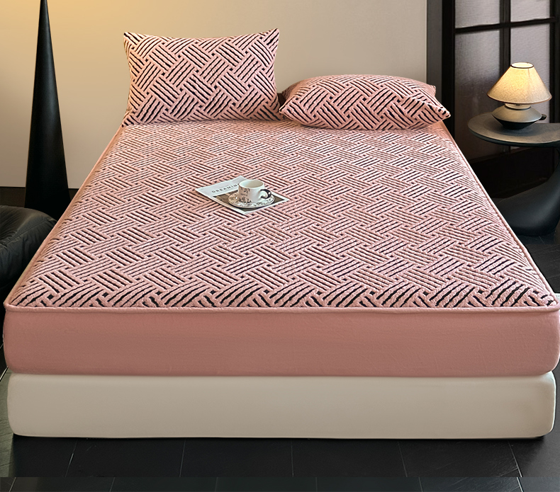 可恩欣 2026新款舒棉绒提花防水床笠-利奥 利奥-杏粉