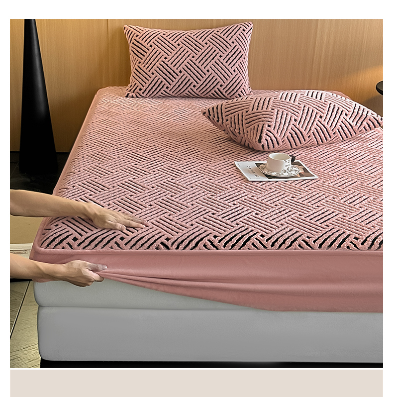 (总)可恩欣 2026新款舒棉绒提花防水床笠-利奥,利奥-皓月,利奥-杏粉,利奥-玄灰,利奥-远蓝,利奥-云咖