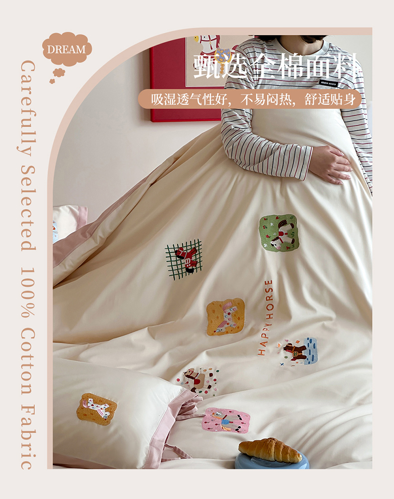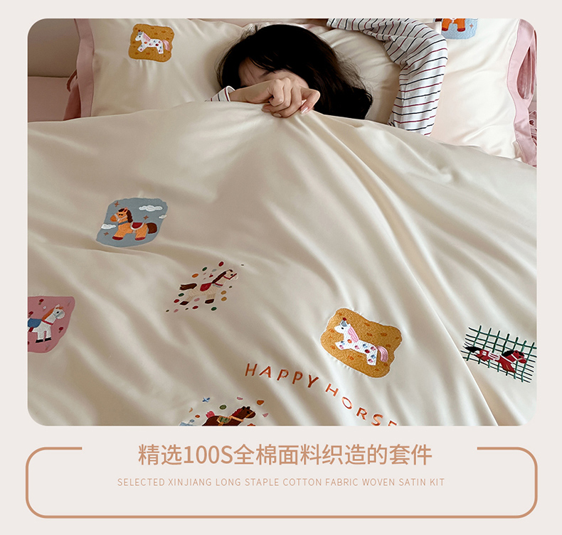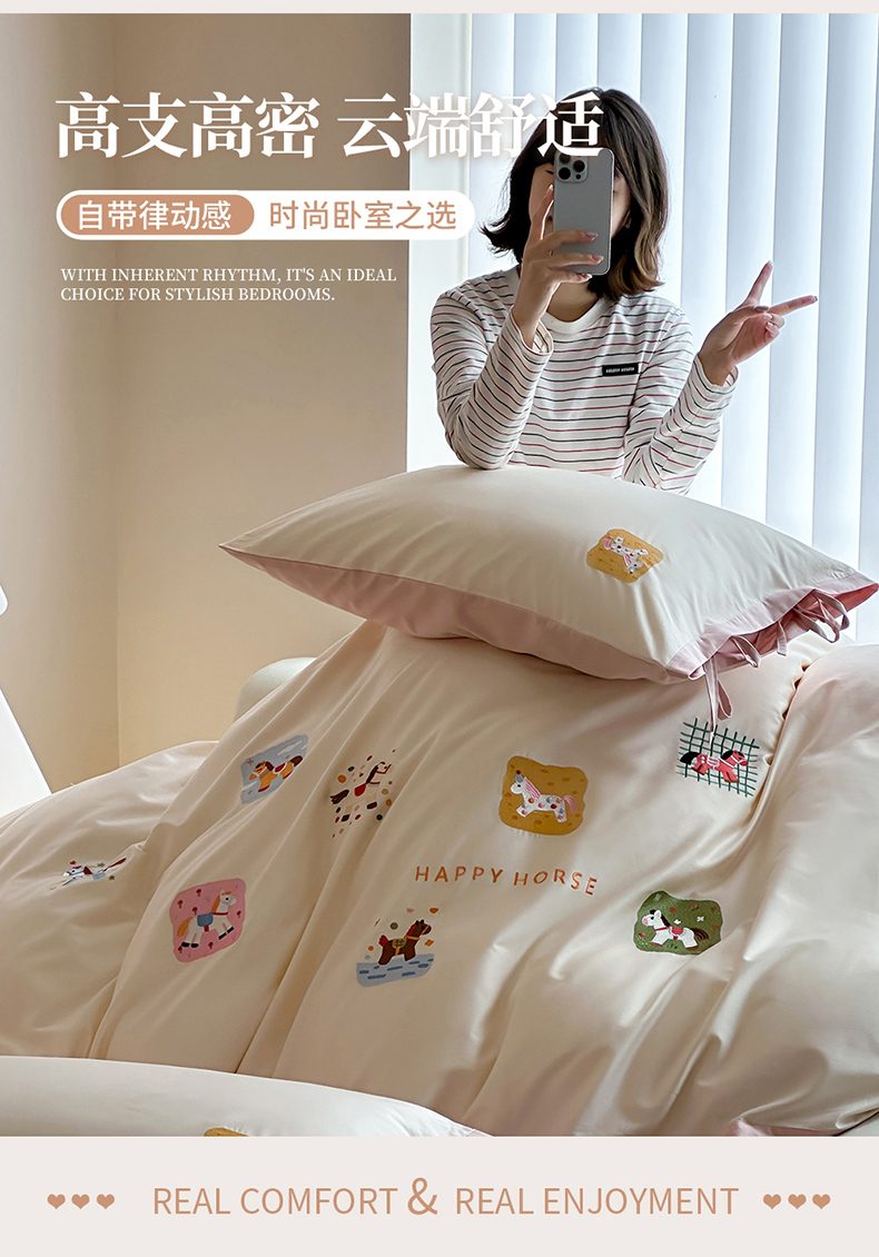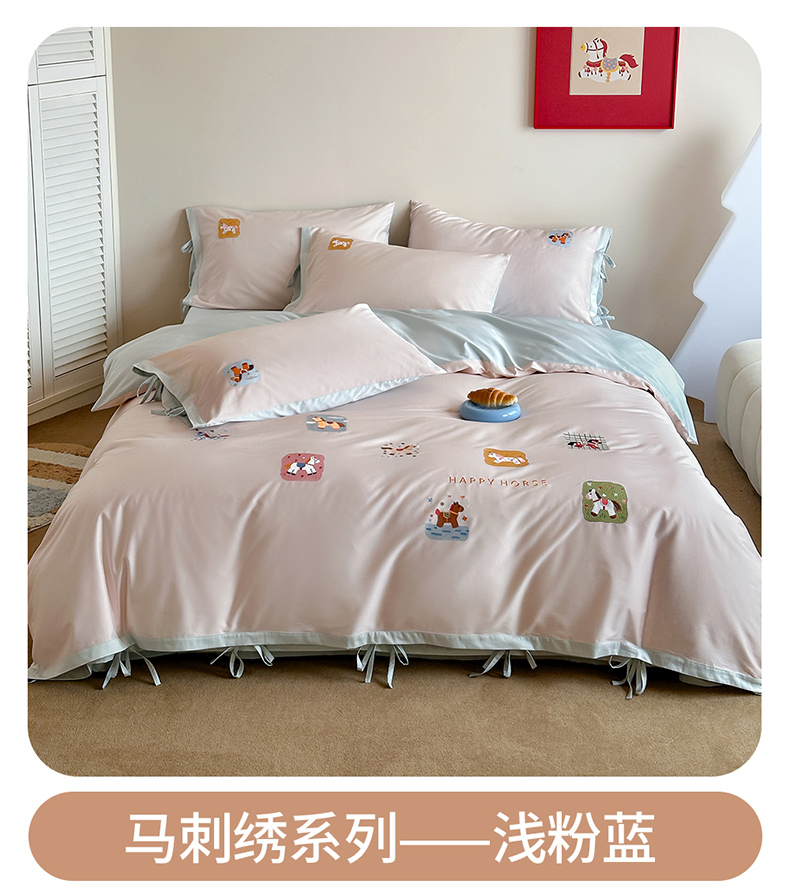 当前位置: 91家纺网 > 商品网购 > 床品套件 > 四件套 > 全棉普通四件套 > 爱缦 2026新款小马奔腾系列100s全棉四件套(此款券后控价:小号238,标准298,大号318) 小马奔腾-白粉色
