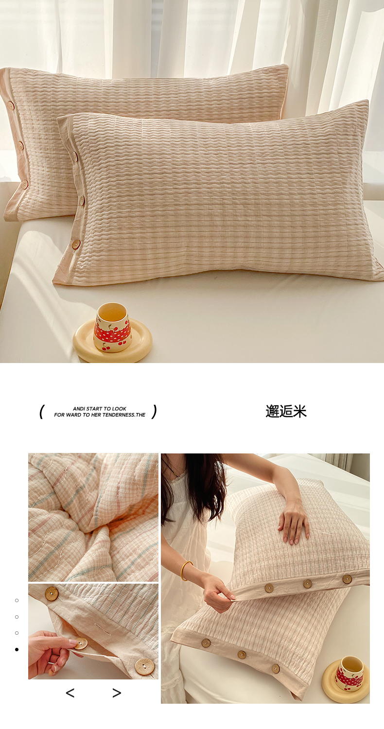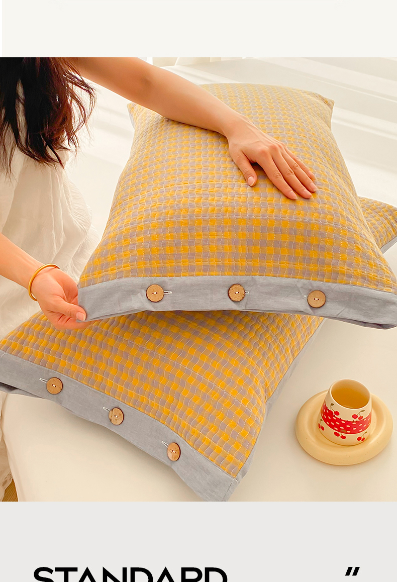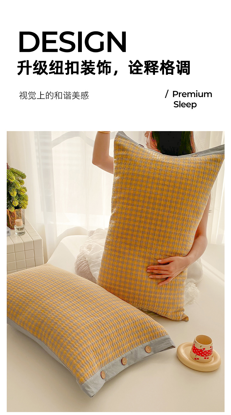 (总)美宜家 2026新款全棉枕头套高密色织水洗加棉绗缝高端纯色枕套,极简山灰,极简米其,极简兰灰,极简仔兰